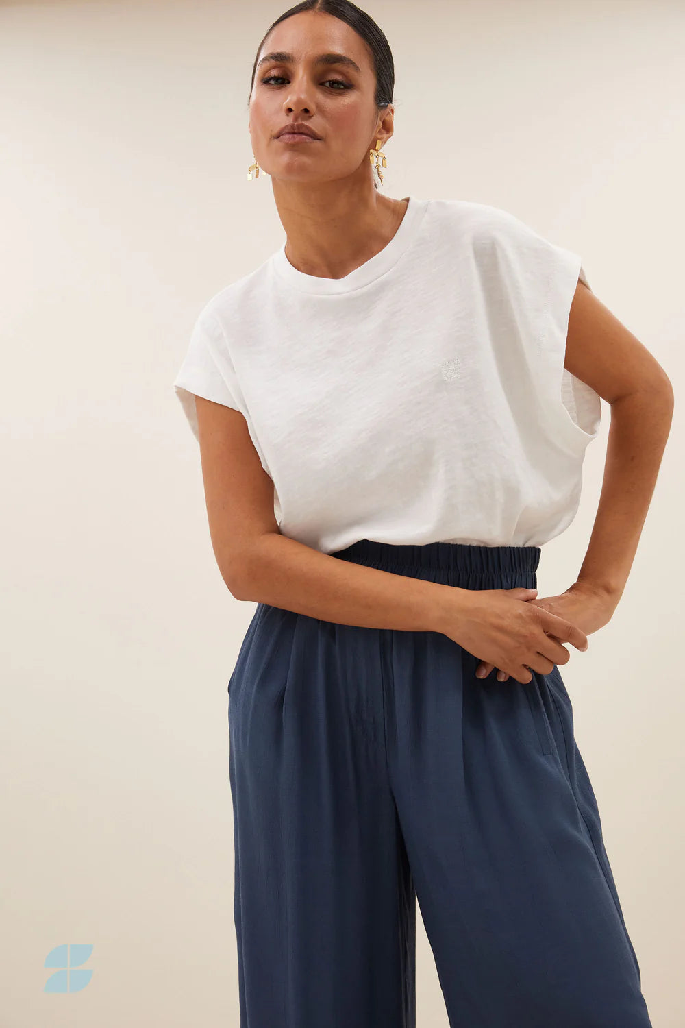 Build the ultimate capsule wardrobe with this modern take on the classic white tee. With a round neckline and sleeveless design, this tee brings a bold look to your simple jeans and trainers, it's the ultimate choice if you like something a bit different!