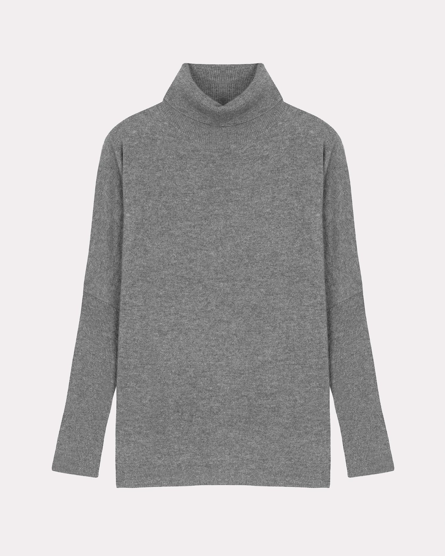 This beautiful cashmere roll-neck knit features a unique poncho cut for an effortless style. With side slits for movement, this knit can be paired with practically anything for a daily look. We love pairing the roll neck with one of our chain necklaces and classic bootcut jeans.