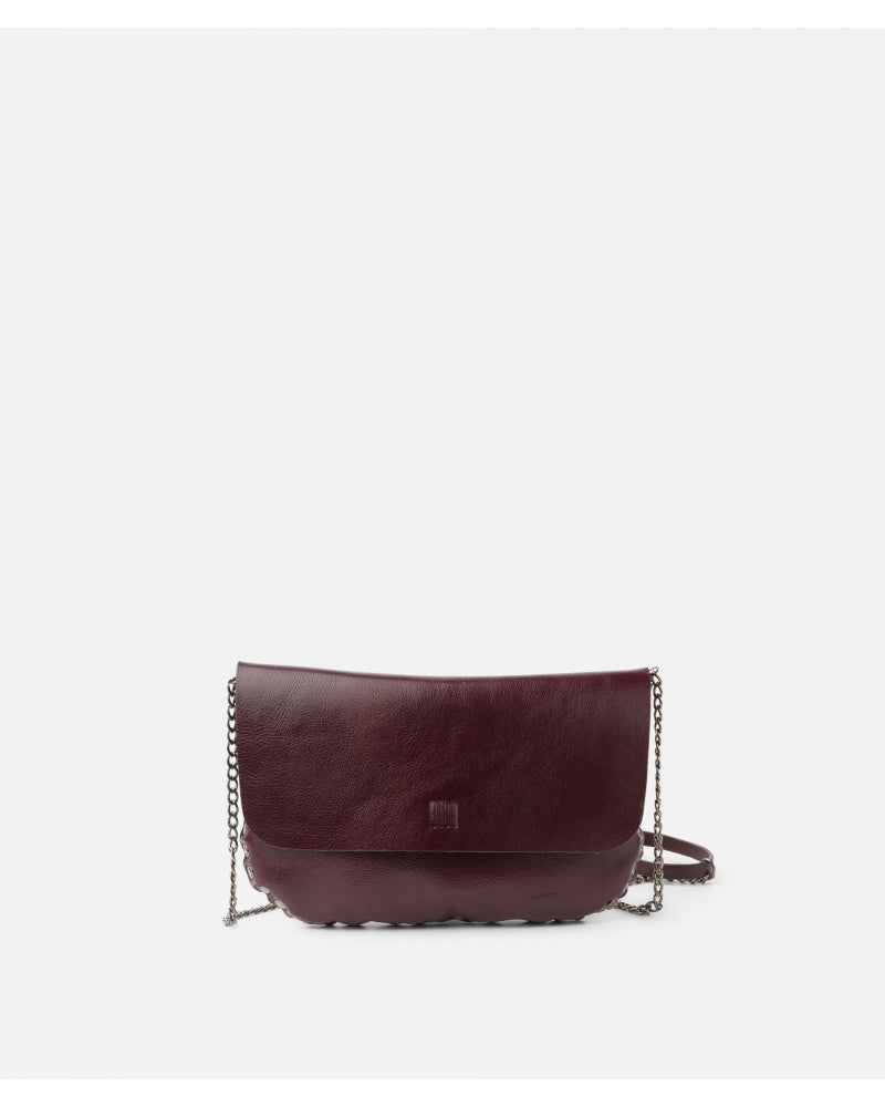 Small in size, huge in style. This beautiful bag is in this season's must have burgundy colour, fit for pairing with autumnal outfits whether they're for a casual day out or a big night event. This burgundy bag has a gunmetal chain strap and rivets around the edge of the bag to bring a little extra style.