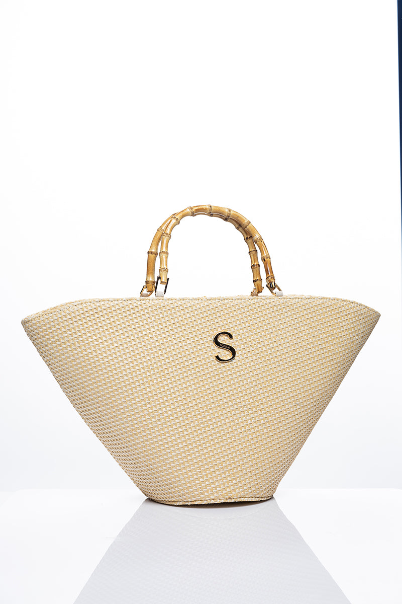 Irida Medium Basket Bag Woven with natural materials and timeless appeal, this medium basket bag is perfect for beach days, weekend getaways, or everyday errands. The structured silhouette offers ample space for essentials while maintaining an effortlessly chic aesthetic. Personalise with a monogram to make it uniquely yours. Versatile enough to pair with any season's wardrobe, this piece combines practicality with understated luxury.