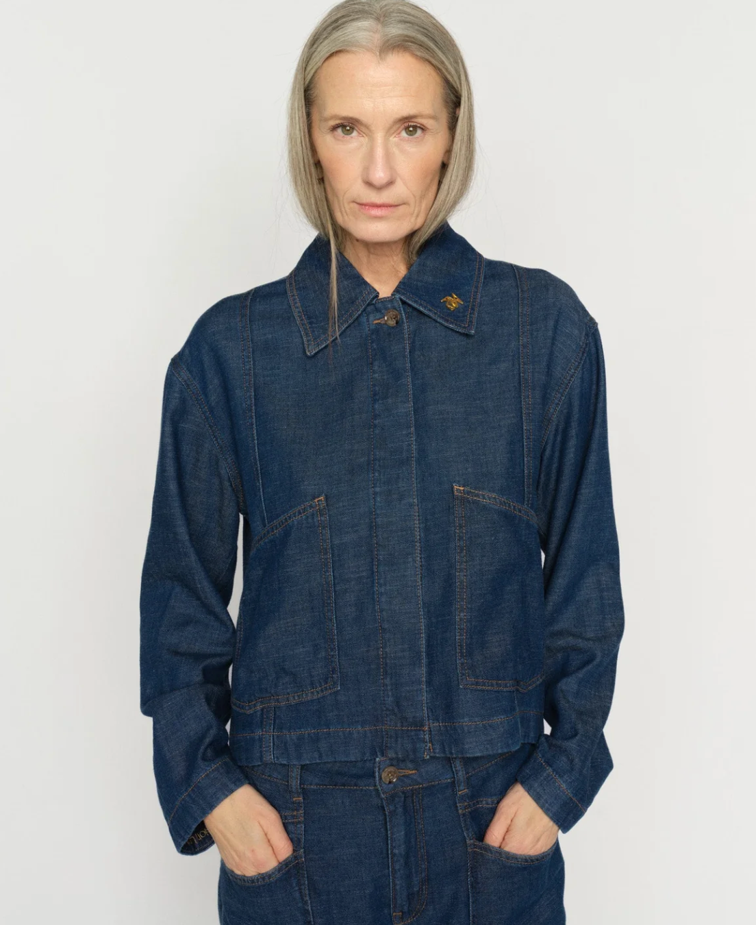 This denim-inspired jacket offers a refined take on casual dressing. Designed in a relaxed fit with a classic collar and button fastening, it features clean lines and subtle stitching for a modern finish. Ideal for layering over dresses, knits or tailored trousers.