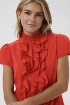 Make a statement with the Tilli SS Shirt in Valiant Poppy—a bold, vibrant piece that celebrates colour with unapologetic flair. Frilly detailing and playful ruffles add movement and personality, while the striking poppy hue commands attention. Perfect for those who embrace fashion as self-expression, this short-sleeve shirt transforms any outfit into something daringly fun and utterly unforgettable.