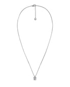 Sassy Gemma delivers rebellious glamour, with round stones set in a square pattern. In this elegant necklace, the sparkling stone from the chain hangs attached to its slightly rounded square, seen here in shiny stainless steel. Great to match with the beautiful studs and hoops, fine necklaces or expressive ring from the same line.