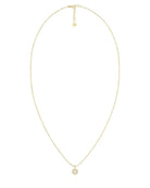 Thassos is one of our top-selling lines with versatile pieces suitable for both everyday and festive occasions. Thassos Necklace S has a smaller round feature piece adorned with one large and 11 small clear stones, delicately secured by a thin chain, seen here in shiny 14K gold plating. Thassos also makes a great gift.