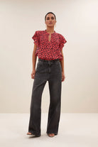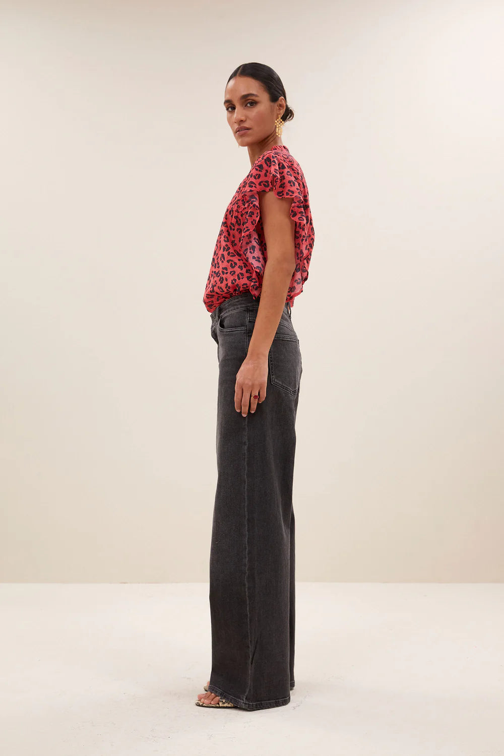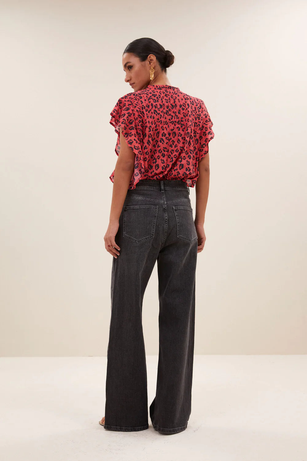 Bright and fiery, this blouse brings the leopard print trend to life in a unique way. Created with a flattering and effortlessly feminine style, this blouse can be worn with anything from denim jeans and shorts to a floaty skirt.
