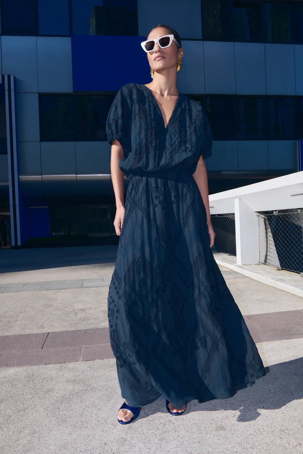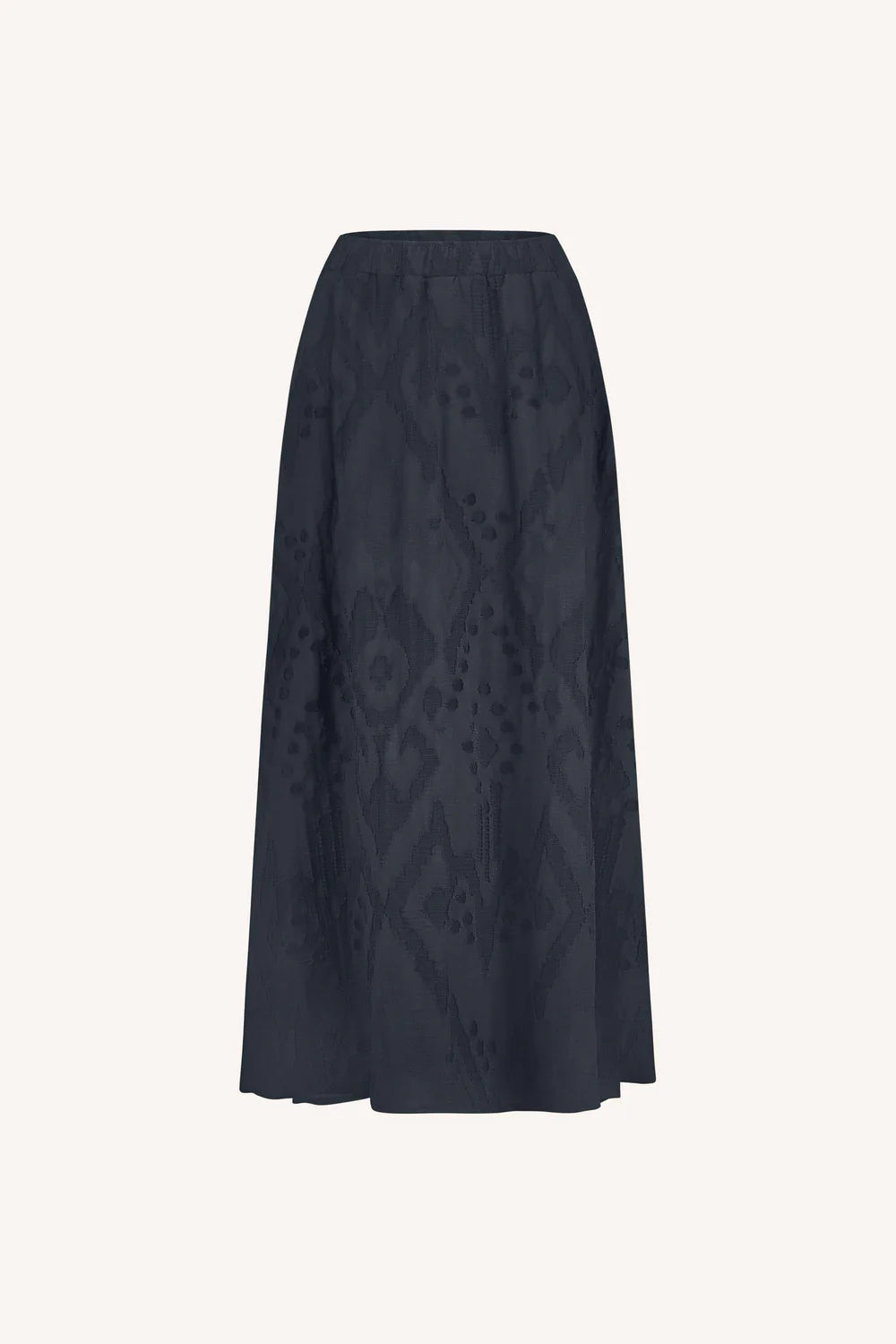 Navy is the new black, and this maxi skirt brings the best of elegant style to your look. Effortlessly chic and just as comfortable, this skirt has an elastic waistband and embroidery all over for a forever flattering look, this skirt is a serious must have!