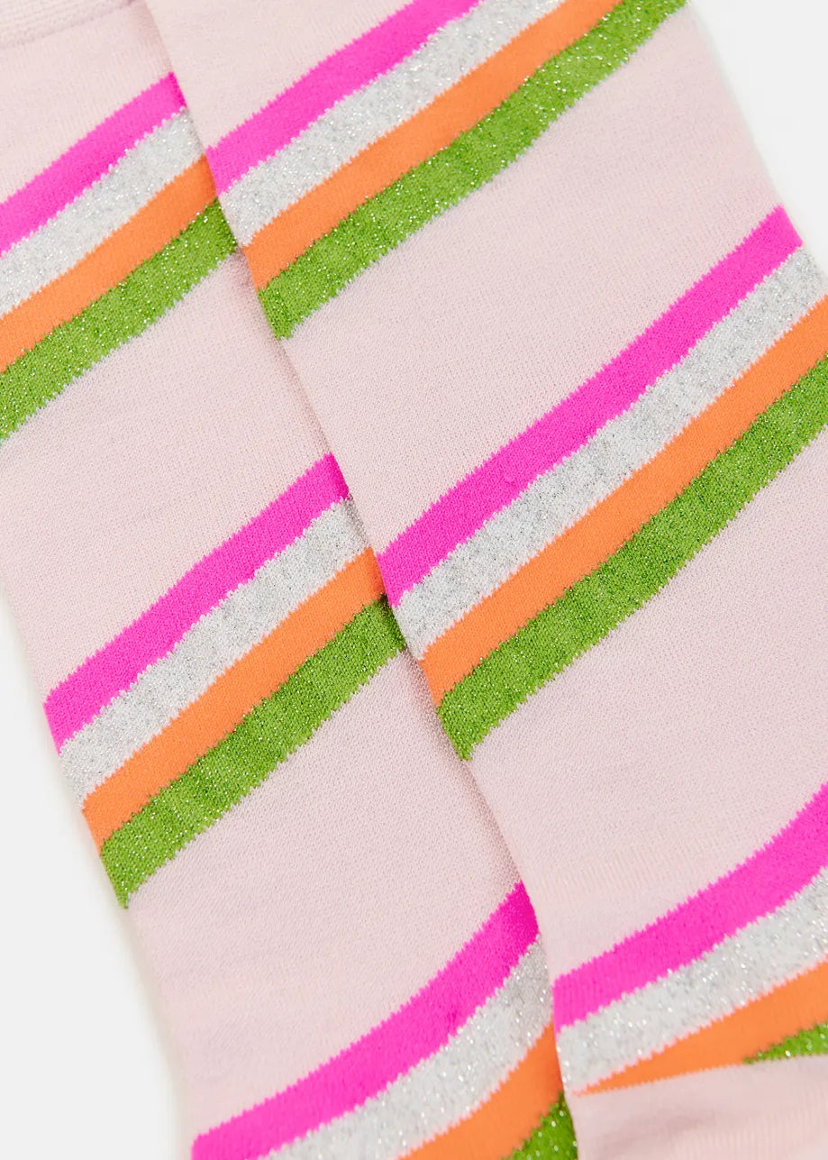 Mid-length socks featuring fun, colorful stripes, some accented with glittery Lurex. Finished with comfortable stretch trims, these socks bring a touch of fun and shimmer to any outfit.