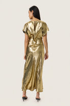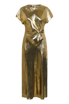 Turn up the glamour with this stunning gold dress that catches the light with every move. Made from beautifully shimmering fabric, it feels instantly special while still easy to wear. The short sleeves and elegant tie detail at the waist create a flattering, feminine shape that works perfectly for any occasion.