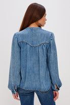 The Sunna is effortlessly cool and beautifully made. With its softly worn wash, shell-button placket, and delicate twist piping, it’s a timeless denim shirt elevated by thoughtful detail. Long puff sleeves and a high neckline give it modern femininity with everyday appeal.