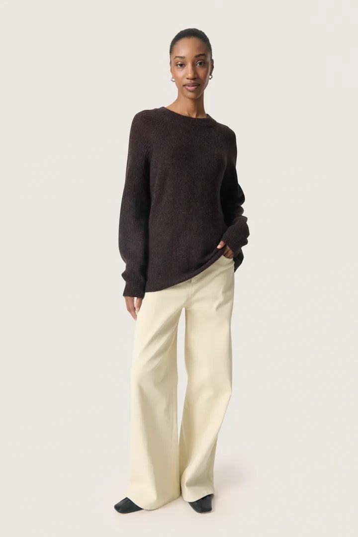 The Tuesday pullover is your classic winter sweater, simple in design but overloaded with comfort. In a slightly looser fit, this cosy jumper has generous space for layering with shirts and blouses, or simple wear with your jeans and a winter coat. We are obsessed with this chocolate brown colour this season!