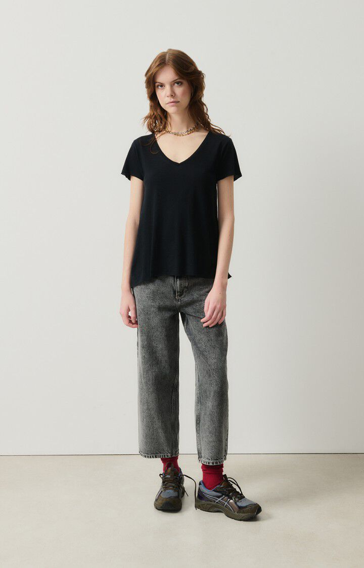 Your favourite t-shirt is back, and in a classic and simple black, you'll be reaching for it every day. With a v-neckline and floaty short sleeves, this ultra soft t-shirt goes with anything from casual jeans, to springtime skirts.