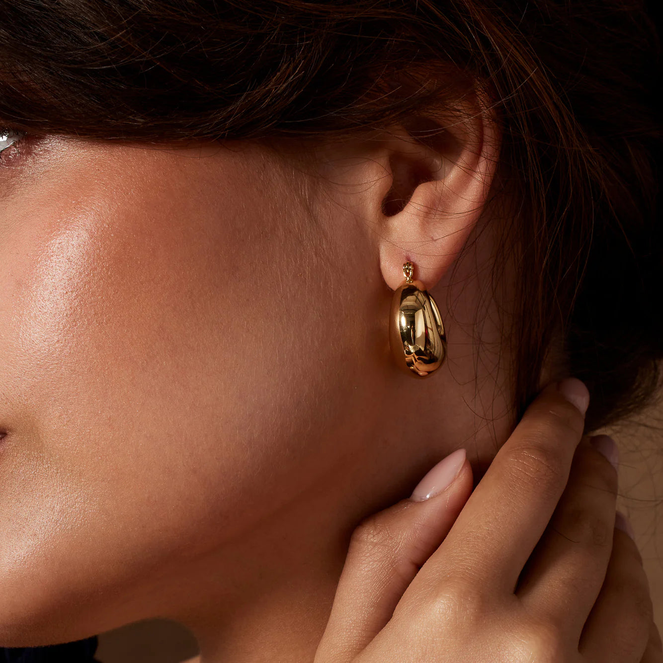 These chunky hoop earrings are a perfect everyday style to finish off a classic outfit. With a classic post that clicks into place, these earrings a simple but a fan favourite.