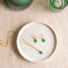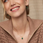 This delicate necklace is a great addition to your festive outfits. In a yellow toned gold, this necklace features a striking but minimal green onyx charm, giving any neckline an elegant and put together finish.