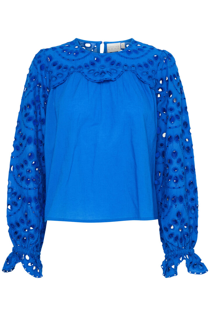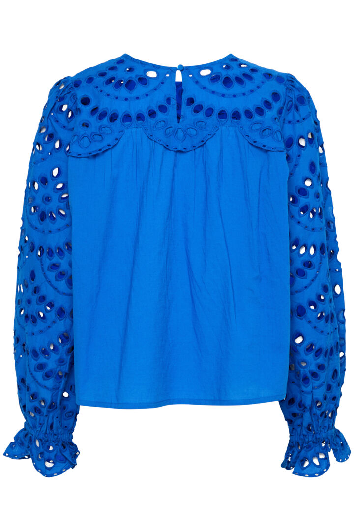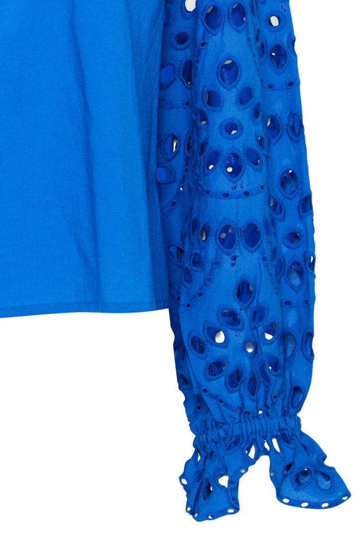 Bright, Bold and full of energy? This blouse brings all of that to your wardrobe with it's statement sleeve and vibrant colour. The broderie anglaise down the sleeve and across the yoke is beautifully eye-catching, but still effortlessly simple!