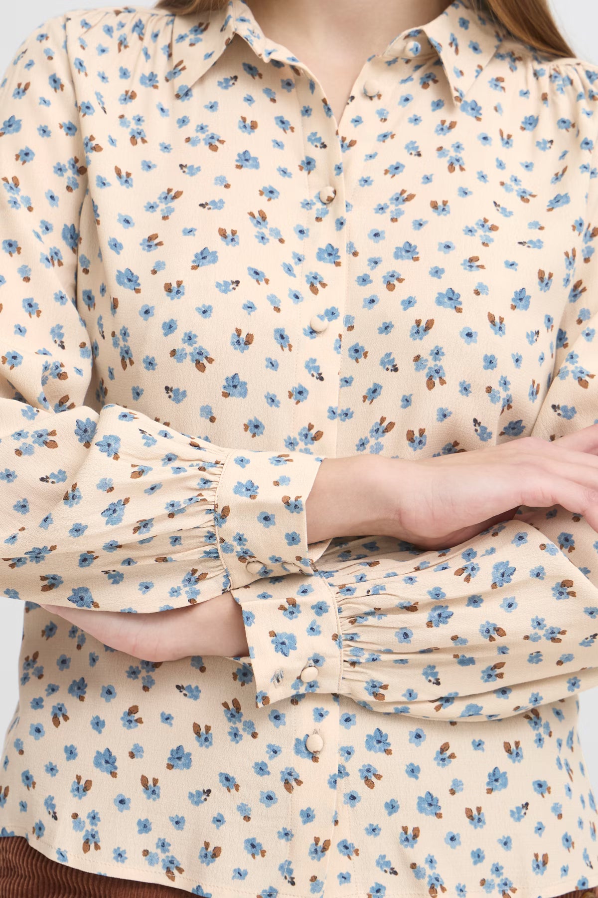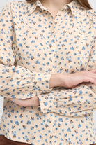 This feminine shirt brings a touch of floral design to your look. In a classic tailored shirt shape, this blouse features a shirt collar and long sleeves with a subtle puffed effect. The pleated effect at the back adds flattering shape for an effortless finish. A pair of dark denim jeans or skirt is all you need for the perfect autumnal outfit.