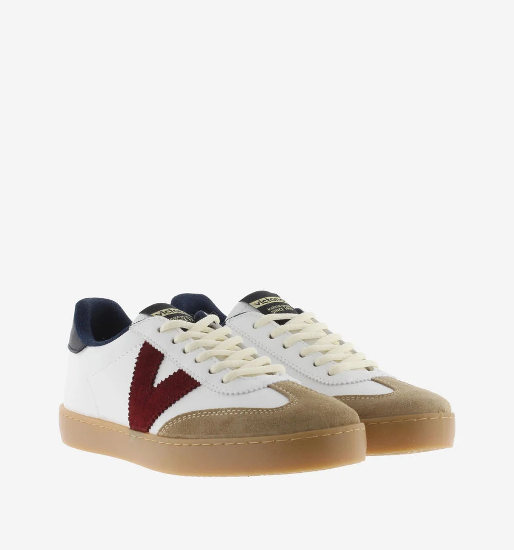 A simple white trainer goes with everything, and these sleek pumps are a fresh take on your classic style. With split leather panels and a contrast of navy and deep red, these trainers pair beautifully with autumnal dresses and classic jeans.