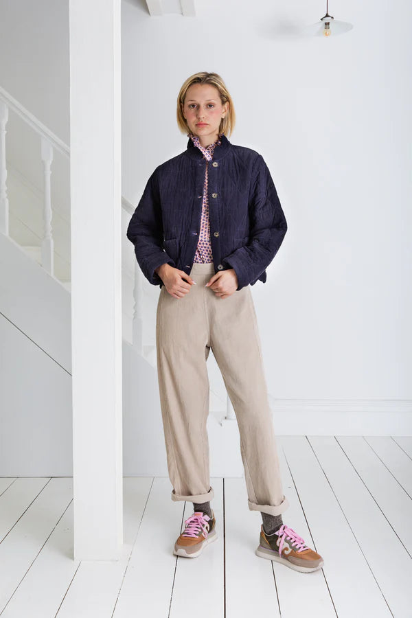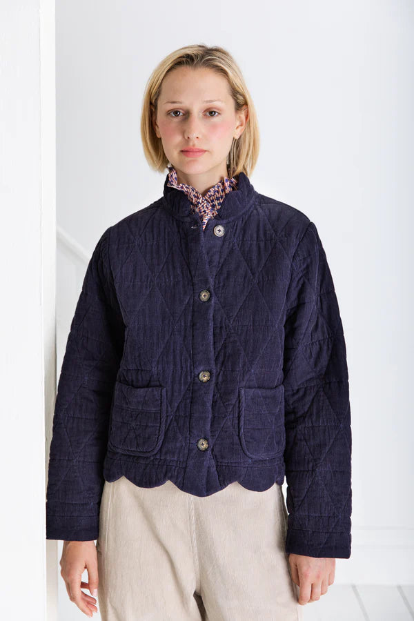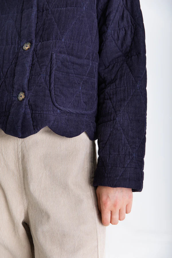 Back for autumn, this jacket is a timeless piece thanks to its minimal design that still packs a whole lot of style. Versatile thanks to it's classic navy colour and corduroy fabric, this jacket can easily be thrown on with knitwear and jeans, or layered over a blouse and tiered skirt.