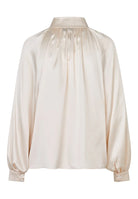 Embrace the 'romantic' side with this truly magnificent blouse. Loose fit with extra fabric, this dramatic shape is all you need to make a statement without the effort. The light porcelain colour is universally flattering, bringing sophistication and an elegant finish with it, but you can easily make this shirt more casual by undoing the buttons.