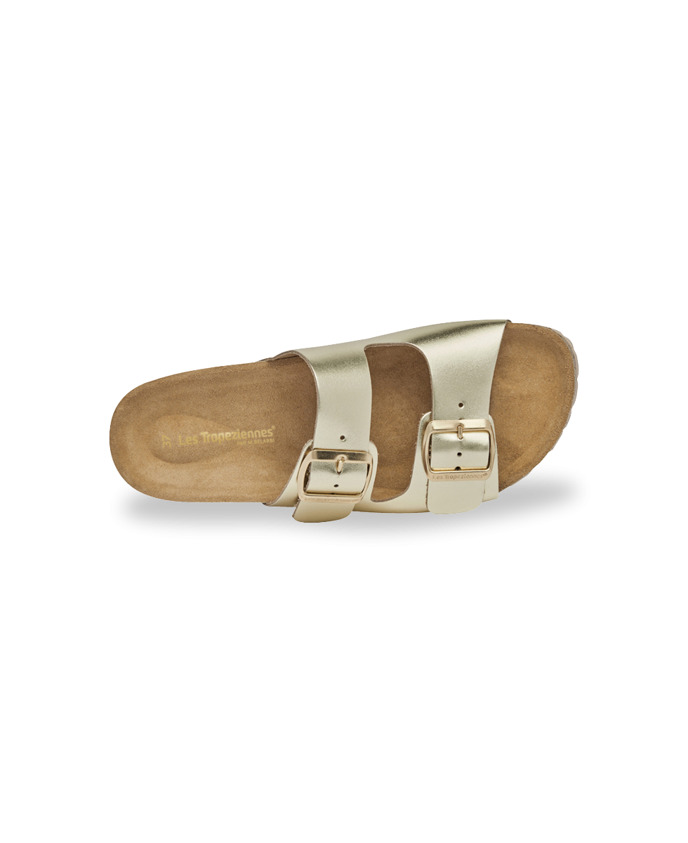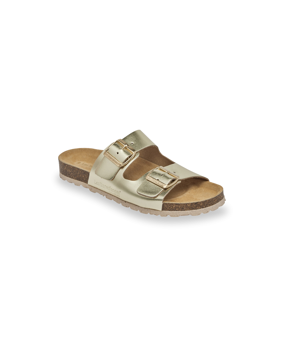 These casual slip-ons feature a flat sole and adjustable buckle for personalised comfort. In an eye-catching metallic finish, these sandals catch the sun making them perfect for the beach or vacation.