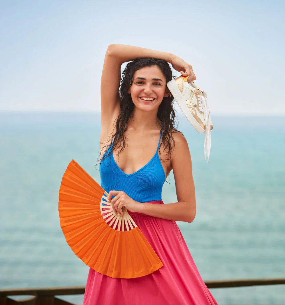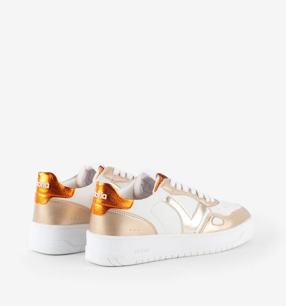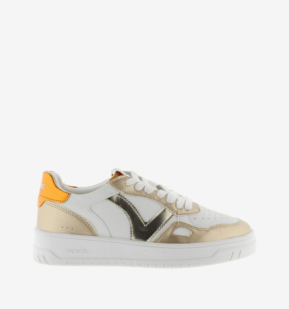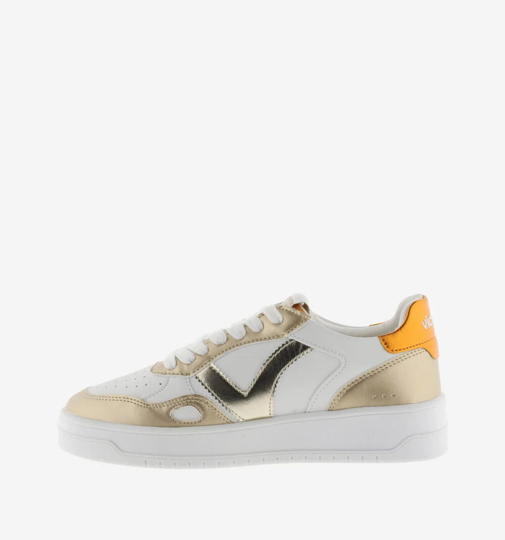 A simple outfit can easily turn into a statement look with these amazing metallic trainers. In a faux leather, the metallic overlays on these trainers bring flashes of gold and orange to your outfit. Everyone will be asking where you got these!
