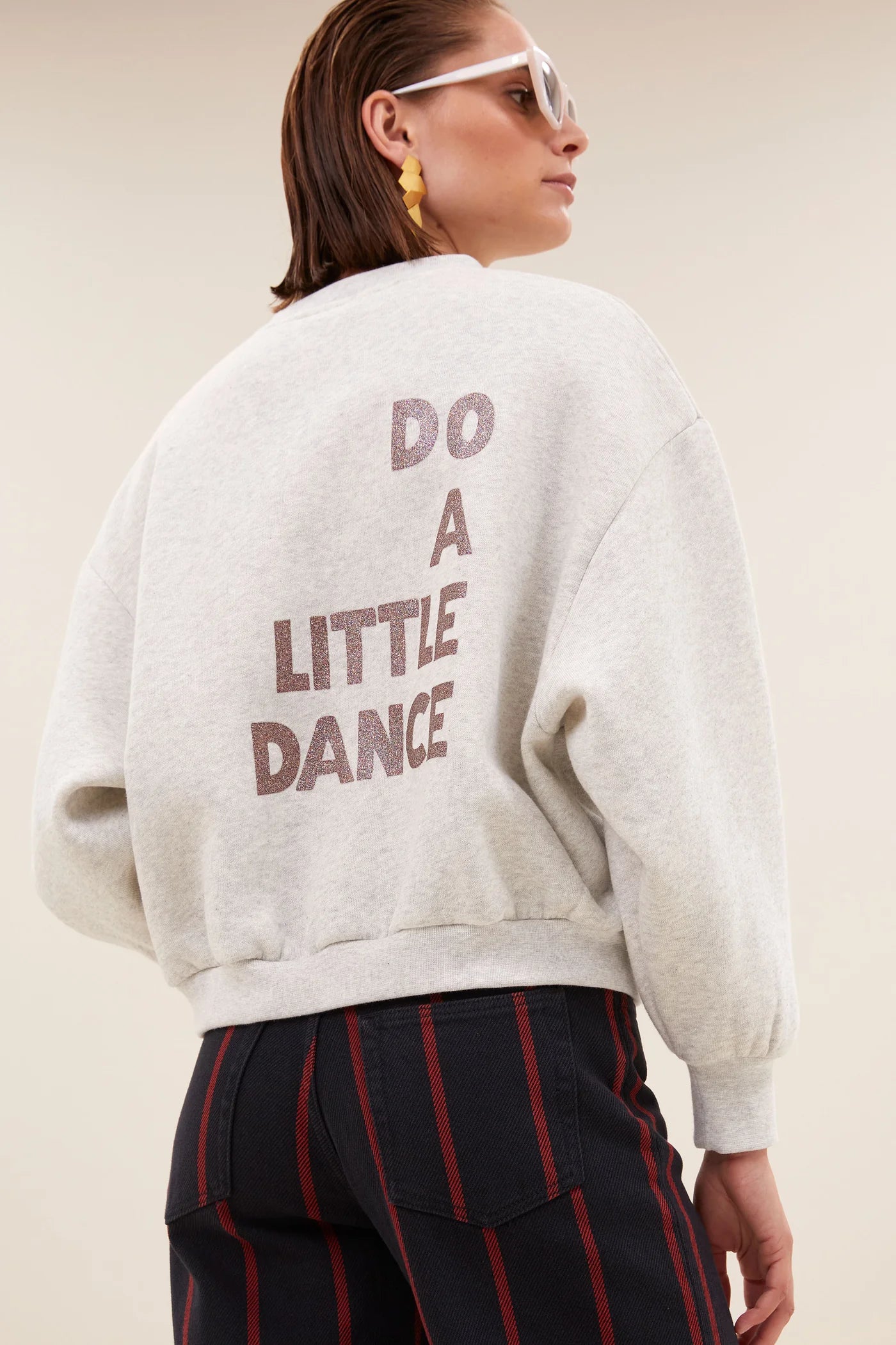 Add a fun and element to your winter attire with this playful sweat from By-Bar. With its glittery 'do a little dance' slogan it's sure to attract some attention. Pair this loose fitting sweat with a pair of barrel jeans or wide legs and a pair of Victoria trainers.