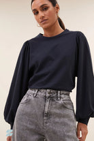 This casual top is an autumnal must have, lightweight, easy to wear and made from super soft jersey. This top has long puffed sleeves making it the ideal style for layering under waistcoats, vests and gilets and pairing with jeans for a casual finish.