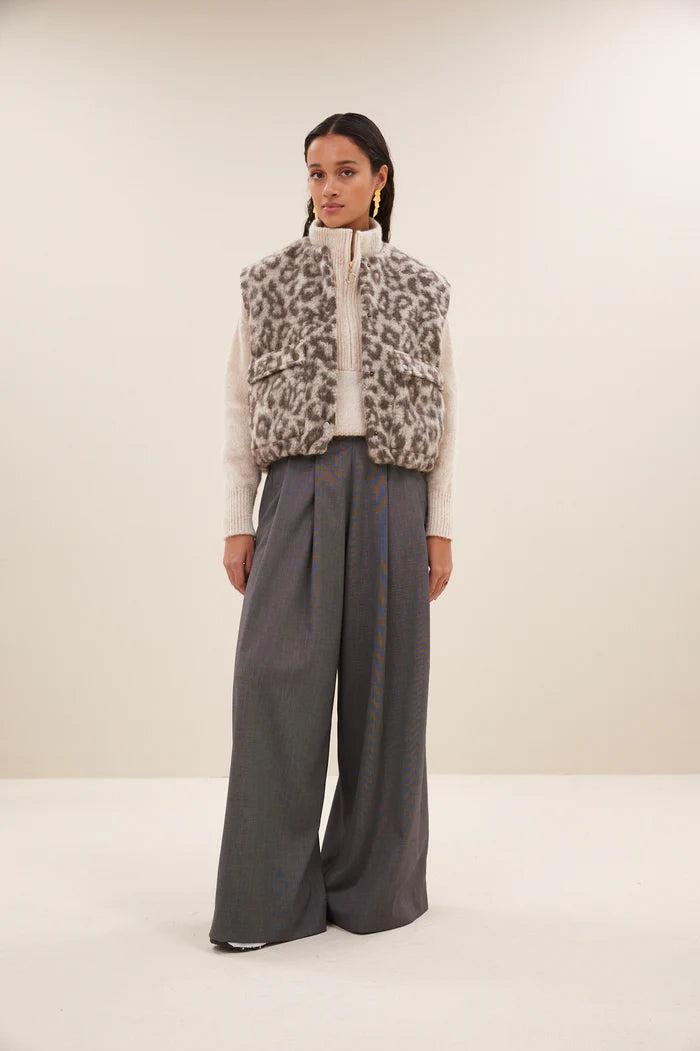 Maggie Sleeveless Leo Jacket - Leopard Print