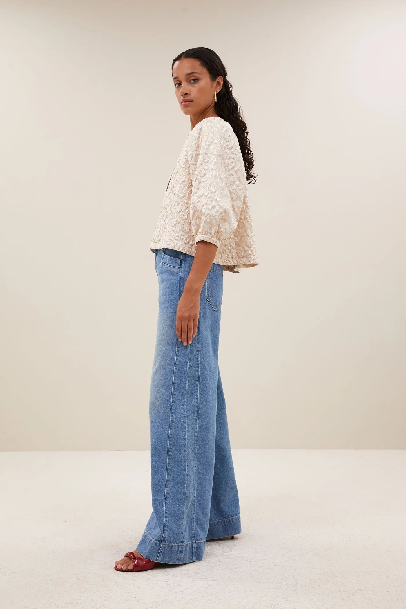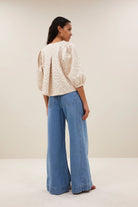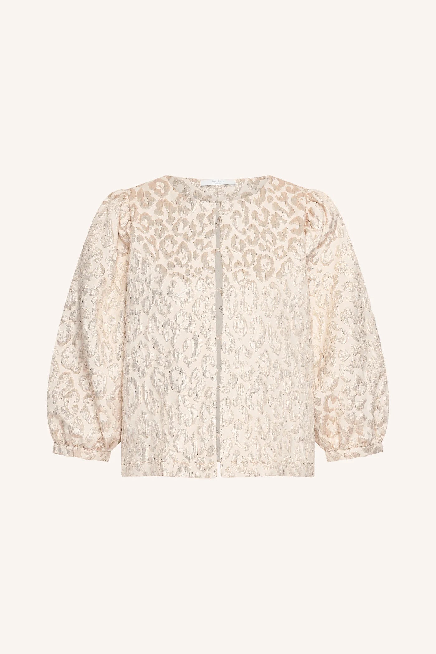 A sparkling, elegant blouse with a subtle cheetah jacquard print and a refined lurex thread for a gentle shine — perfect for festive events, evenings out, or elevating everyday outfits with a touch of glamour.