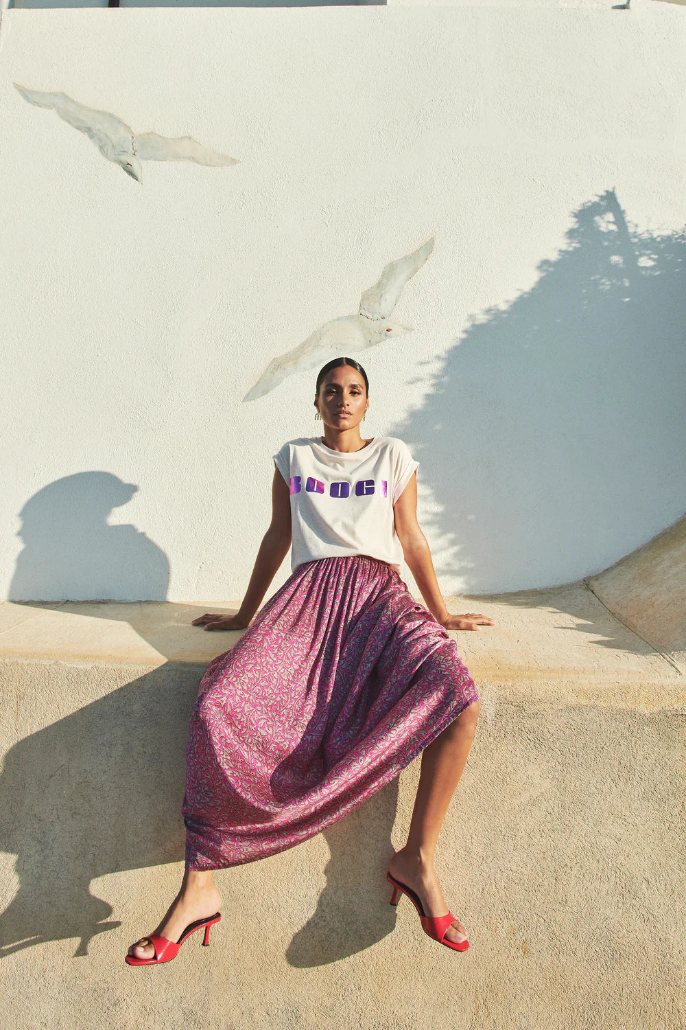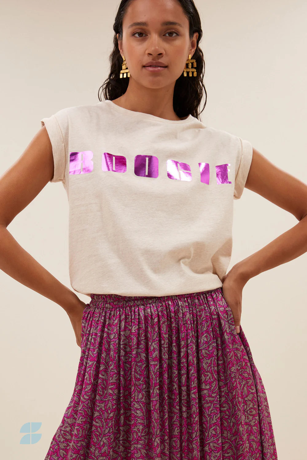 The party never stops with this tee from By-Bar! This has been an absolute best seller and the new design is certainly one to add to your collection! With simple capped sleeves and a lightweight cotton, this is easy to style for all year wear.