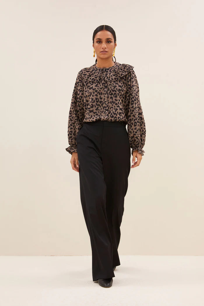 This women's blouse is a wardrobe must have, featuring this year's favourite print and a feminine design that is perfect for winter occasions. With ruffled details at the sleeves and collar, this blouse brings a chic look to any day.