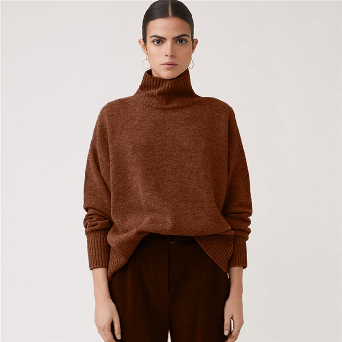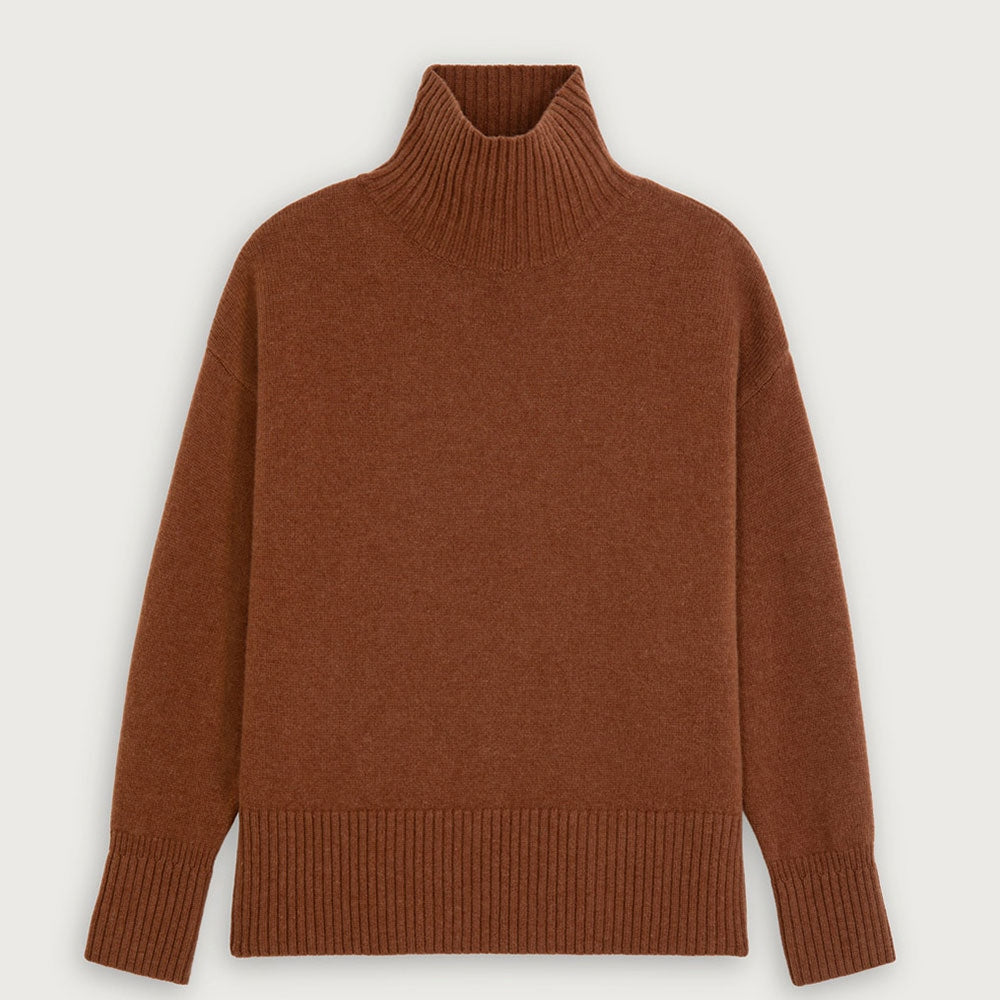This classic cosy knit will become an autumnal essential. In a rich chocolate brown colour, this luxury knit can be layered under coats and paired with jeans and skirts for versatile outfits.