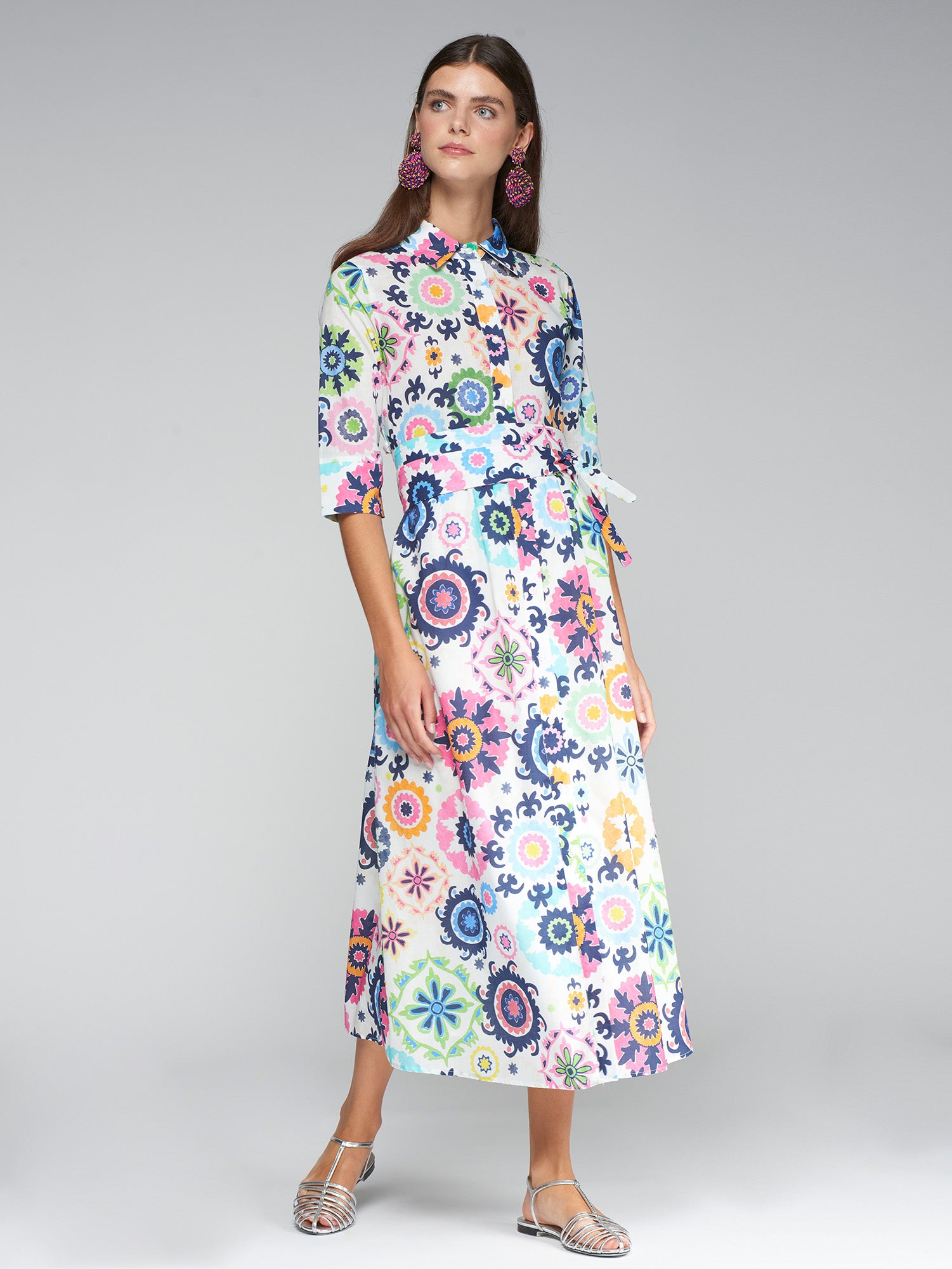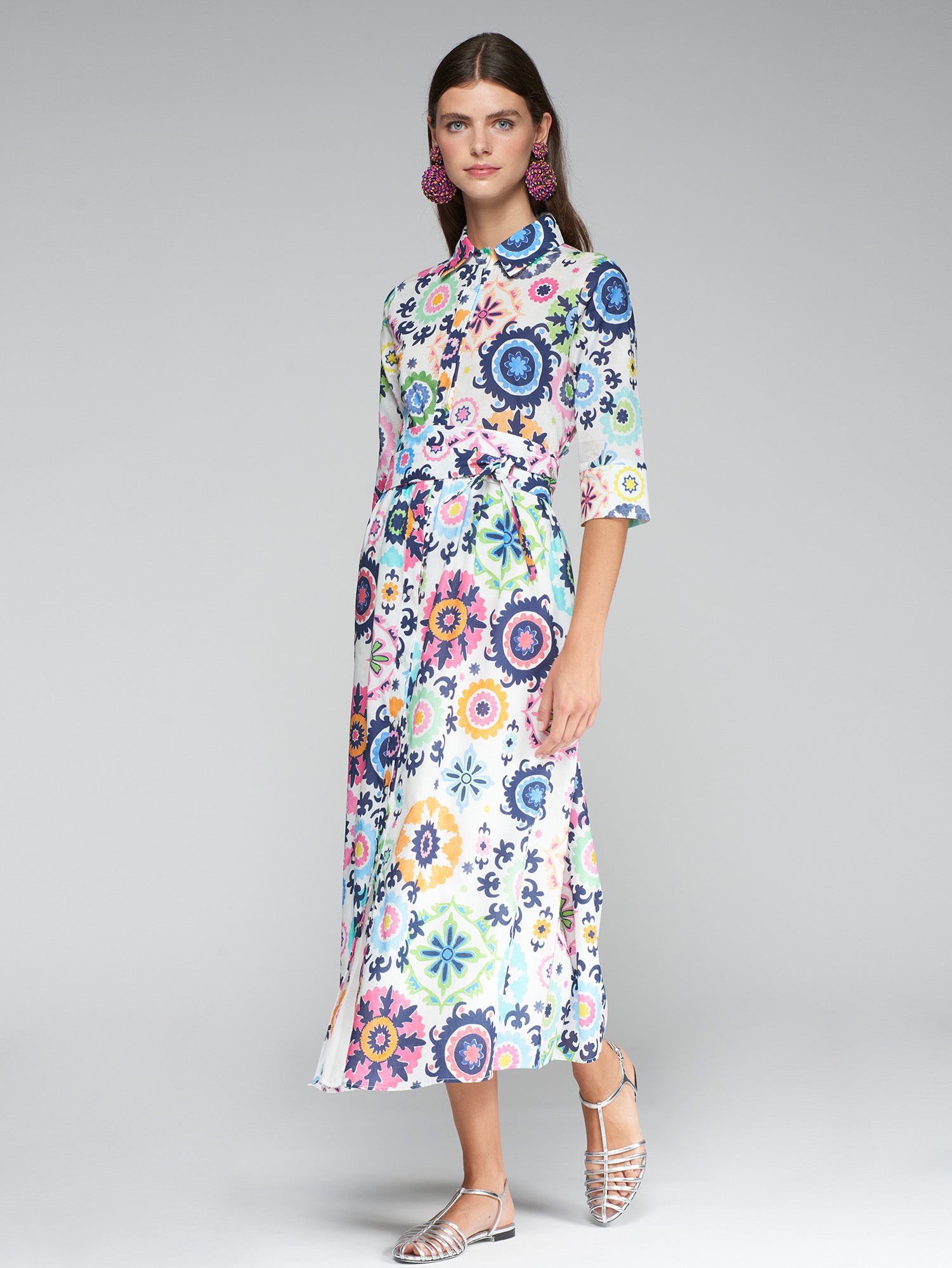 Wimbledon whites? Ladies Day? Graduation? Whatever the occasion this dress is perfect. In a midi length with a unique colourful print, this dress is perfectly elegant, whilst still brining some personality forward. The bow tie at the waist is removable, but really elongates the whole outfit. Pair with tan sandals and a basket bag for a real WOW look.