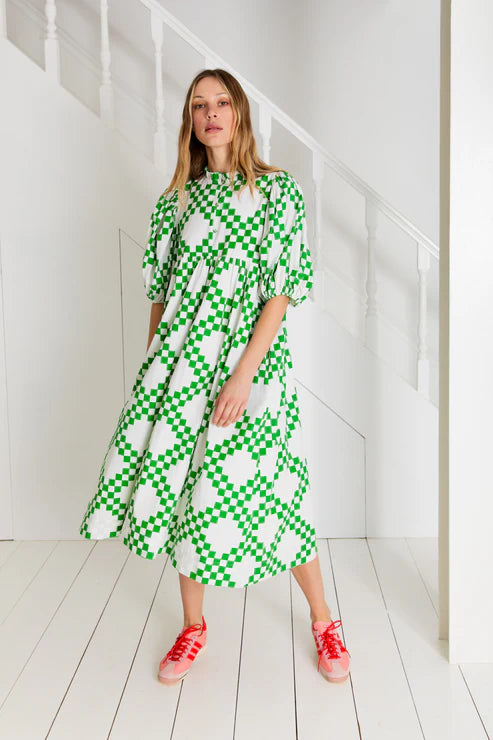 When you wear this dress, you can literally just throw on and go, but no one will be able to tell! In an oversized finish, this dress has a loose fit, but is still beautifully flattering thanks to its gathered empire waist. The voluminous sleeves makes pairing this dress with a gilet the perfect look.