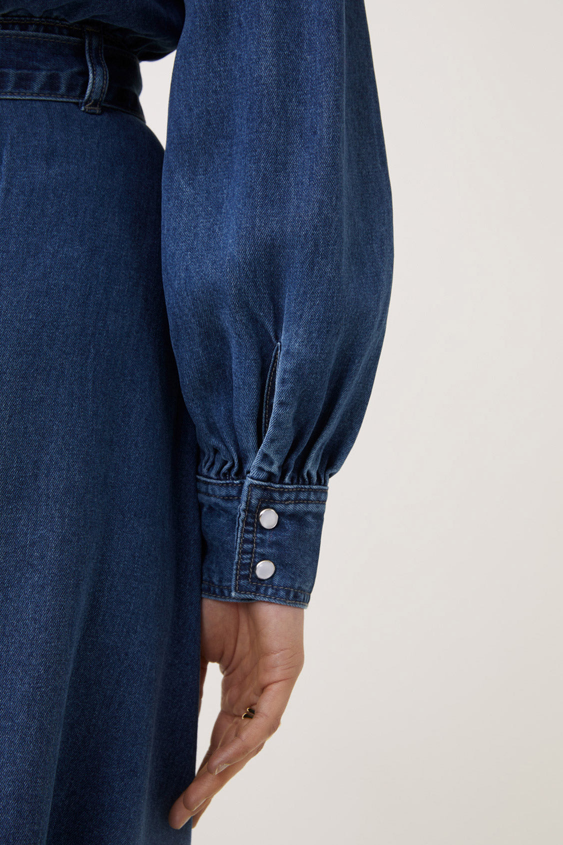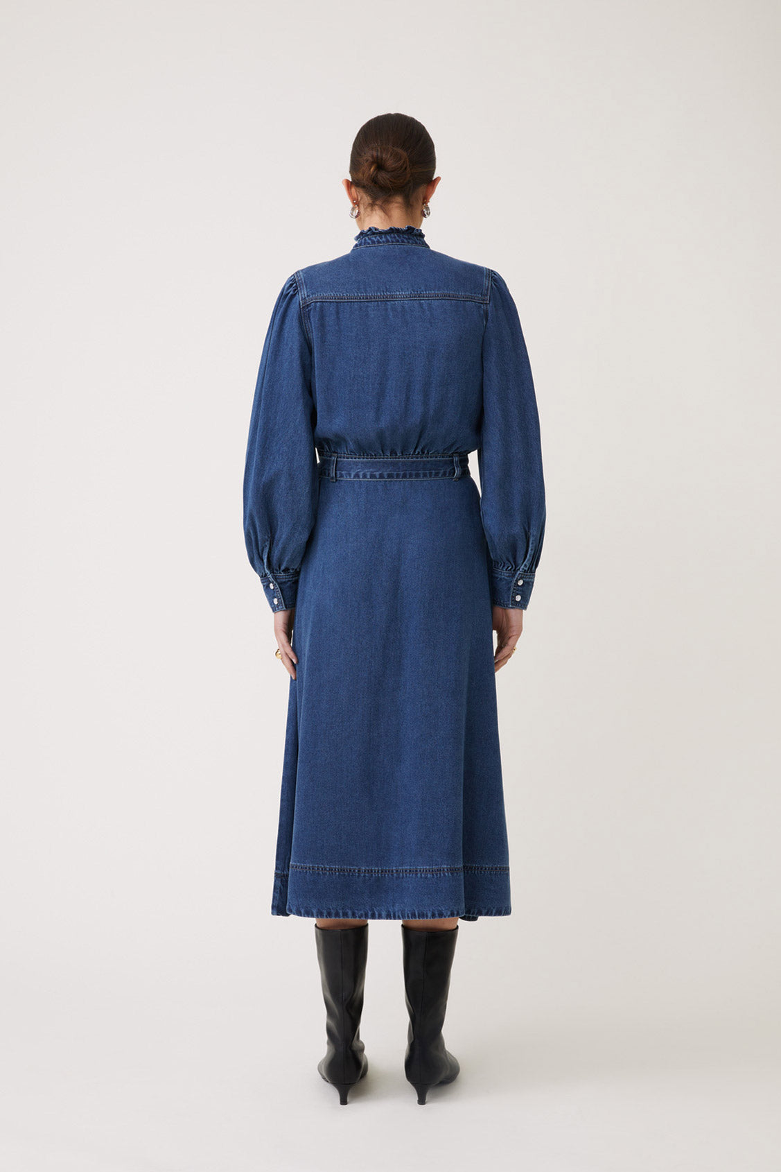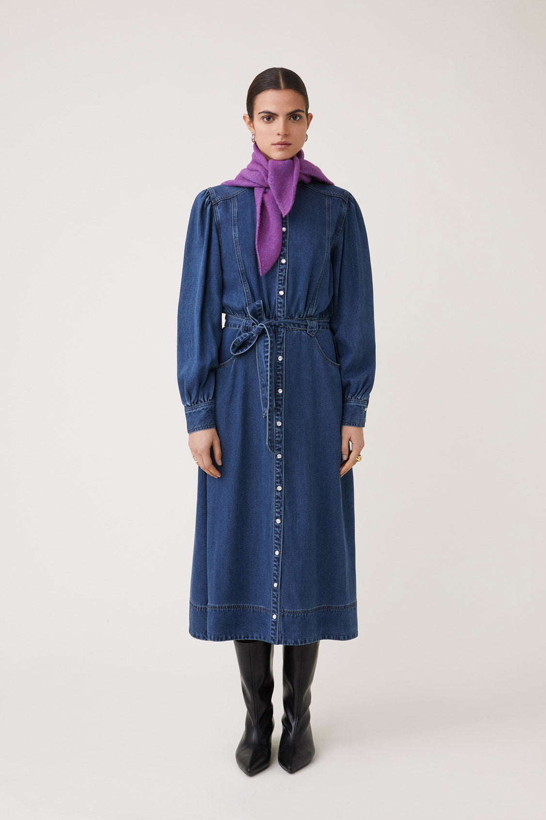 This maxi denim dress features a removable belt and a classic design, making it versatile for any occasion. Dress it up or keep it casual with a pair of crisp white trainers from D.A.T.E