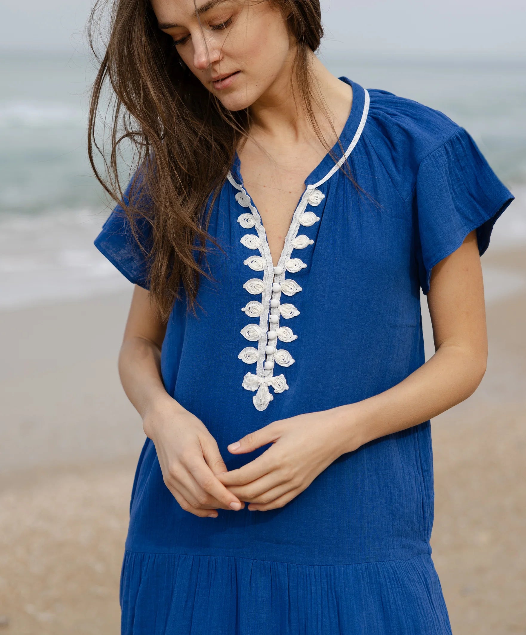 Perfect for any summer day, this dress is an effortlessly elegant piece, one of those that you'll want to wear day after day. In a soft cotton gauze, this relaxed dress can be thrown on over your swimwear with sandals or dressed up for an evening out.