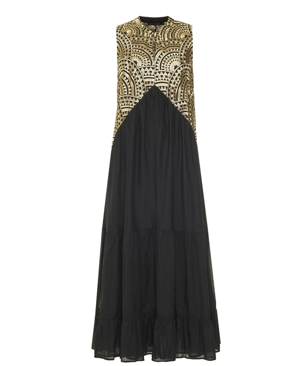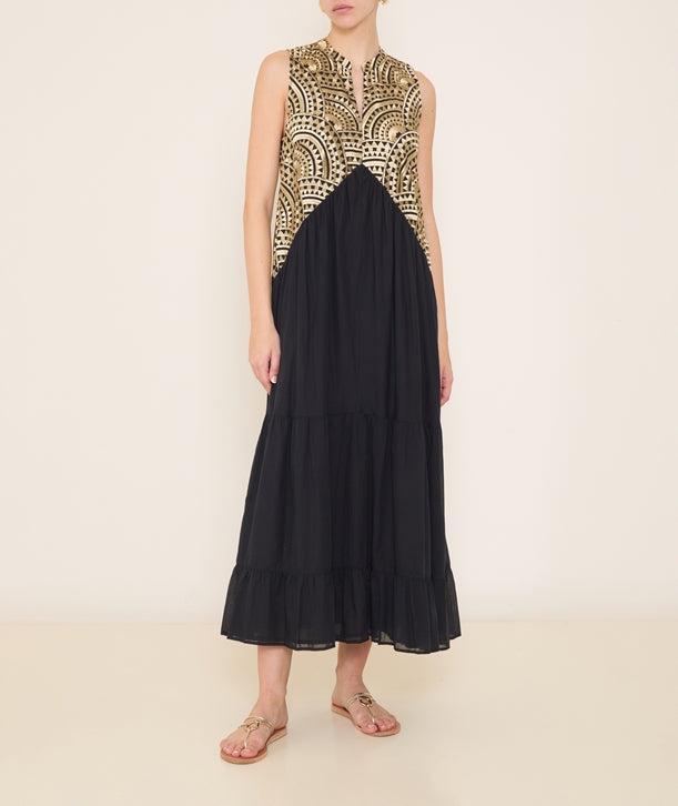 New Triangles Tiered Dress - Black/Gold