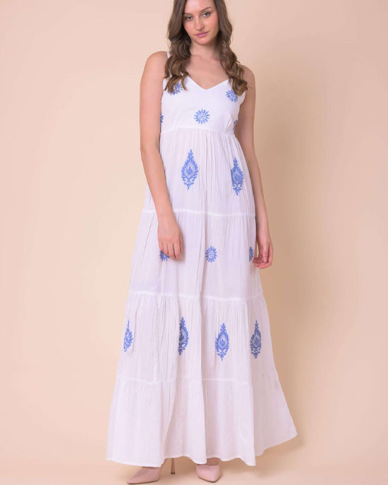 This classic maxi length dress is made from 100% cotton, perfect for the hottest days of summer. With adjustable spaghetti strap sleeves, this dress will keep you totally cool for days on the beach.