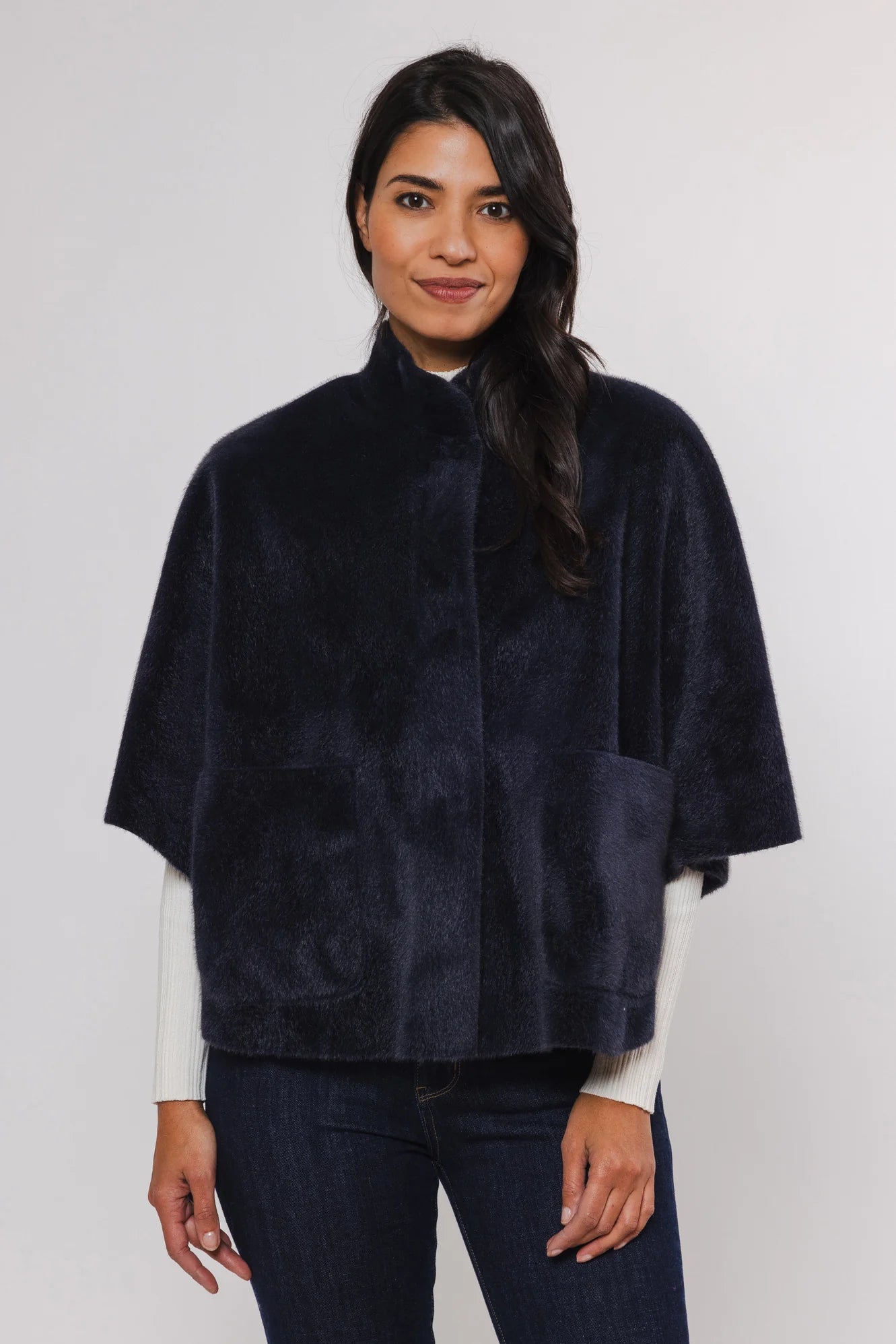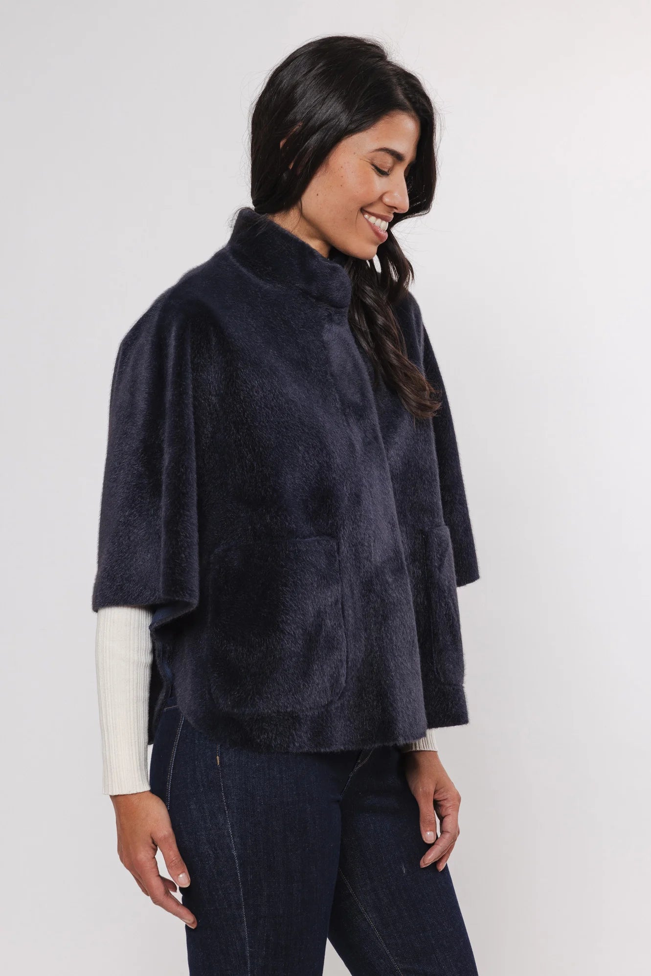 Indulge in luxury with our Dewi Cape in Birch. Made with elegant faux fur, this chic and fashionable piece features open pockets and a snap button closure for added class. Its soft fabric and short sleeves, along with slit details for easy movement, make this cape a must-have for any stylish wardrobe.