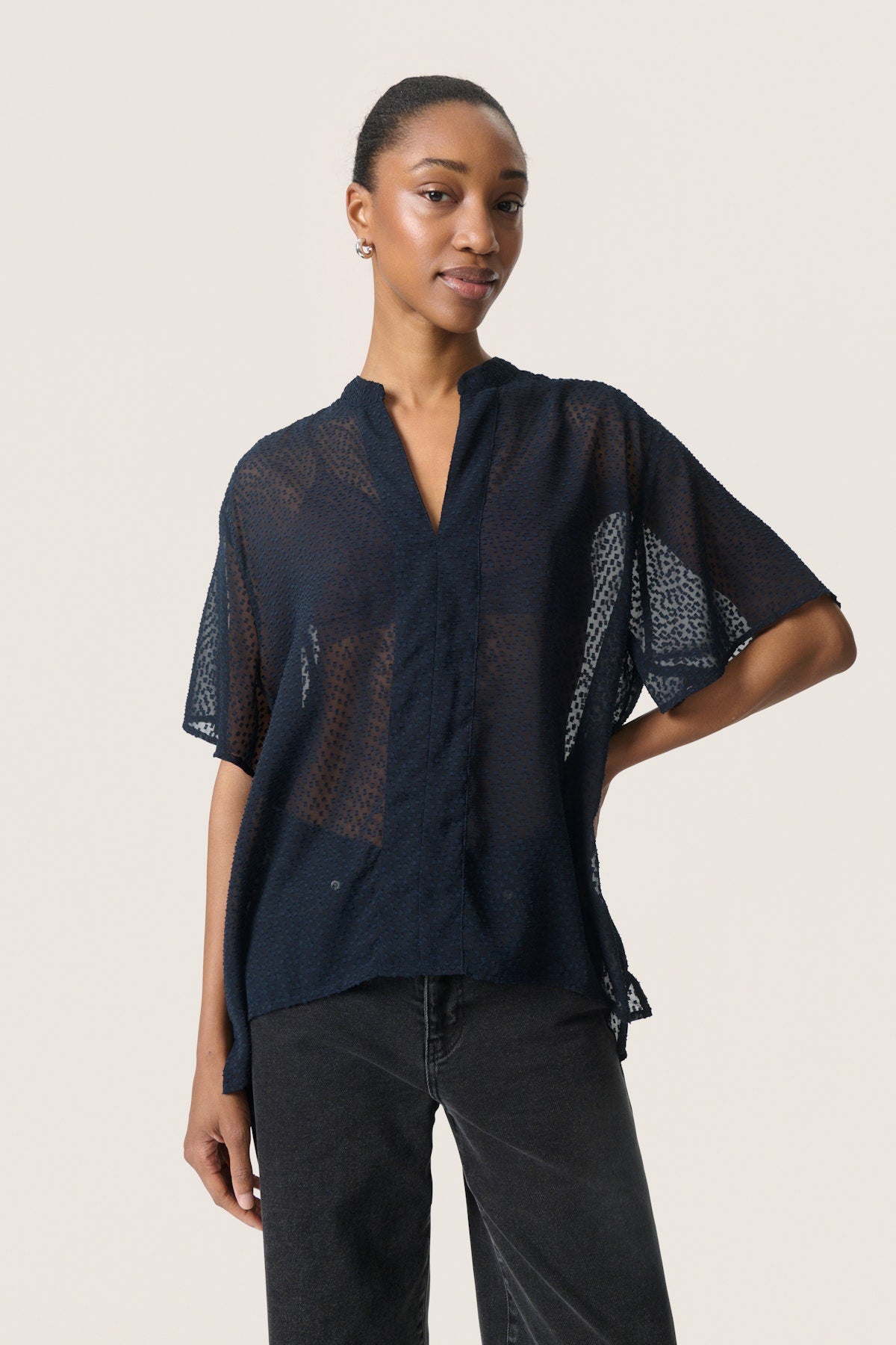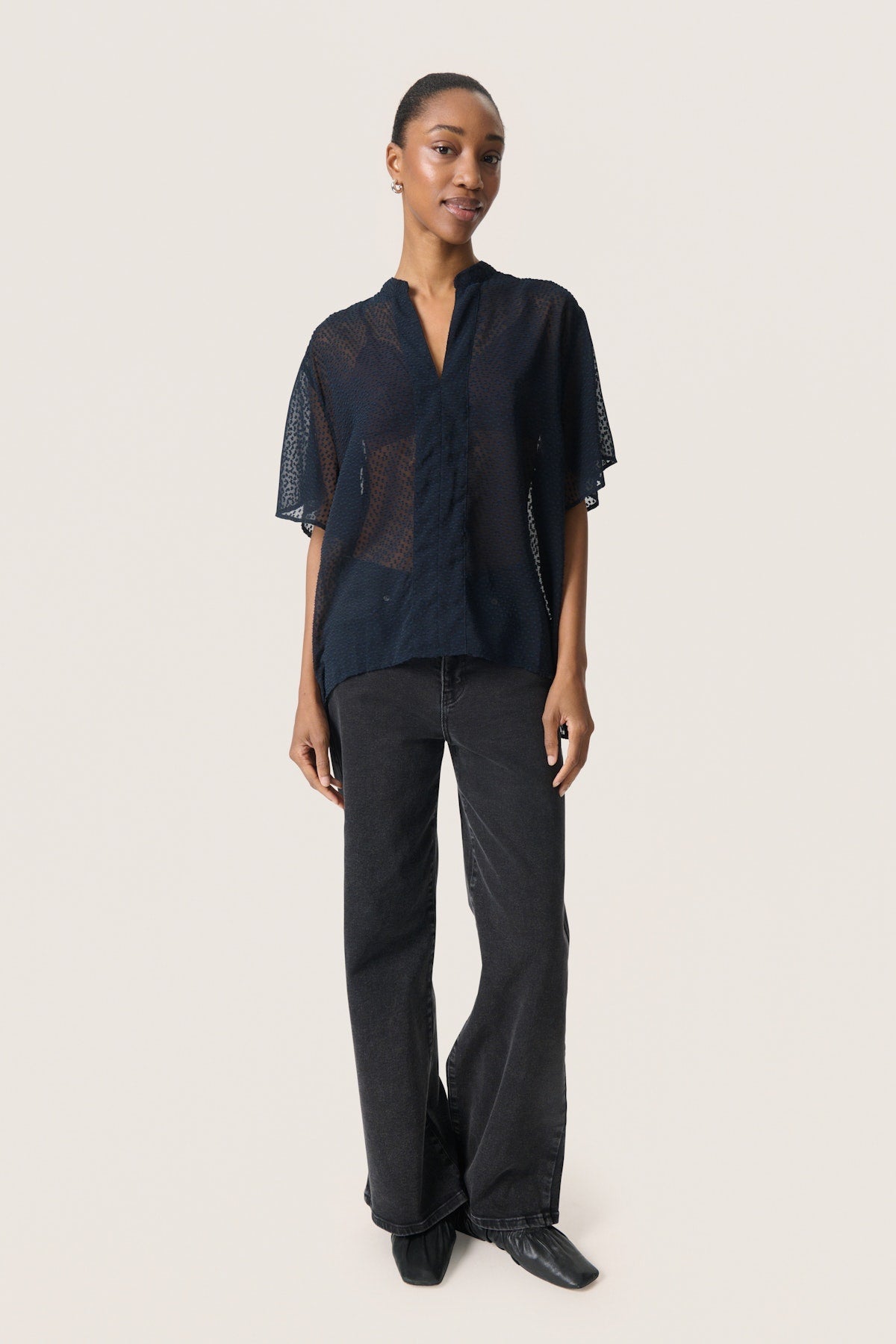 This light and feminine blouse is an all year must have. With a sheer fabric, this blouse is perfect for the evening with a lace chemise underneath. We think this blouse looks great with anything from a tailored blazer, simple denim or an evening skirt.