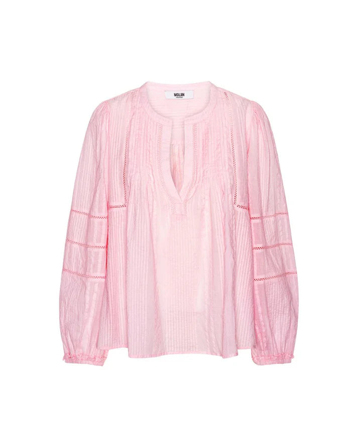This shirt is timeless, you'll want to pull it out summer after summer. In a light candy pink colour, this shirt looks great with a tan, white jeans and some summer sandals. The flattering and feminine style gives this shirt beautiful movement.