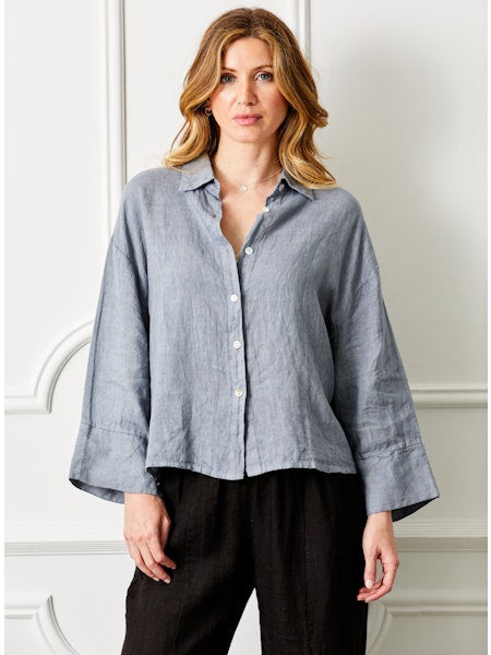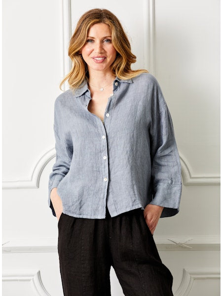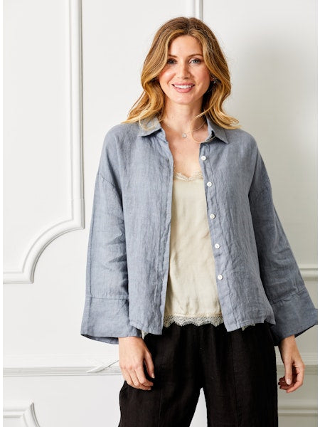 Linen is definitely the fabric of summer, and this simple breezy shirt is just what you want if you're spending your summers on the beach somewhere warm. With a classic button up front and shirt collar, this design is timeless.
