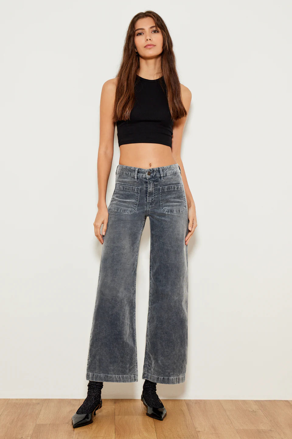 The Lucia jeans are a classic wide leg style, with flattering patch pockets on the front for added design. In a steel coloured fine corduroy, these jeans are the perfect casual style pants, simply pair with a knitted jumper or t-shirt layered under a blazer.