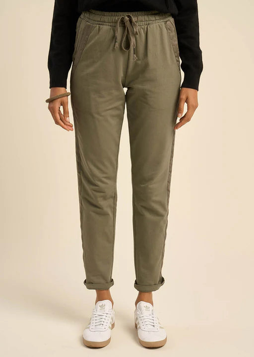 Upgrade your loungewear with our Poery Trouser in Marine. These fashionable jogger style pants feature an elastic waistband with a drawstring for added comfort. The Italian style pockets add a touch of luxury, while the satin piping down the leg elevates your look.