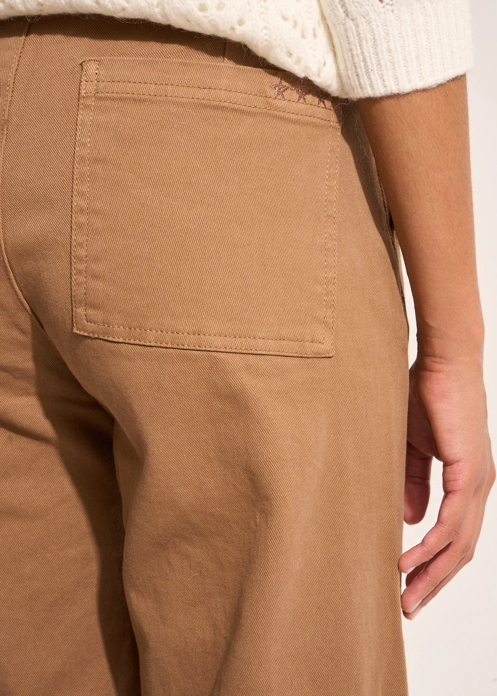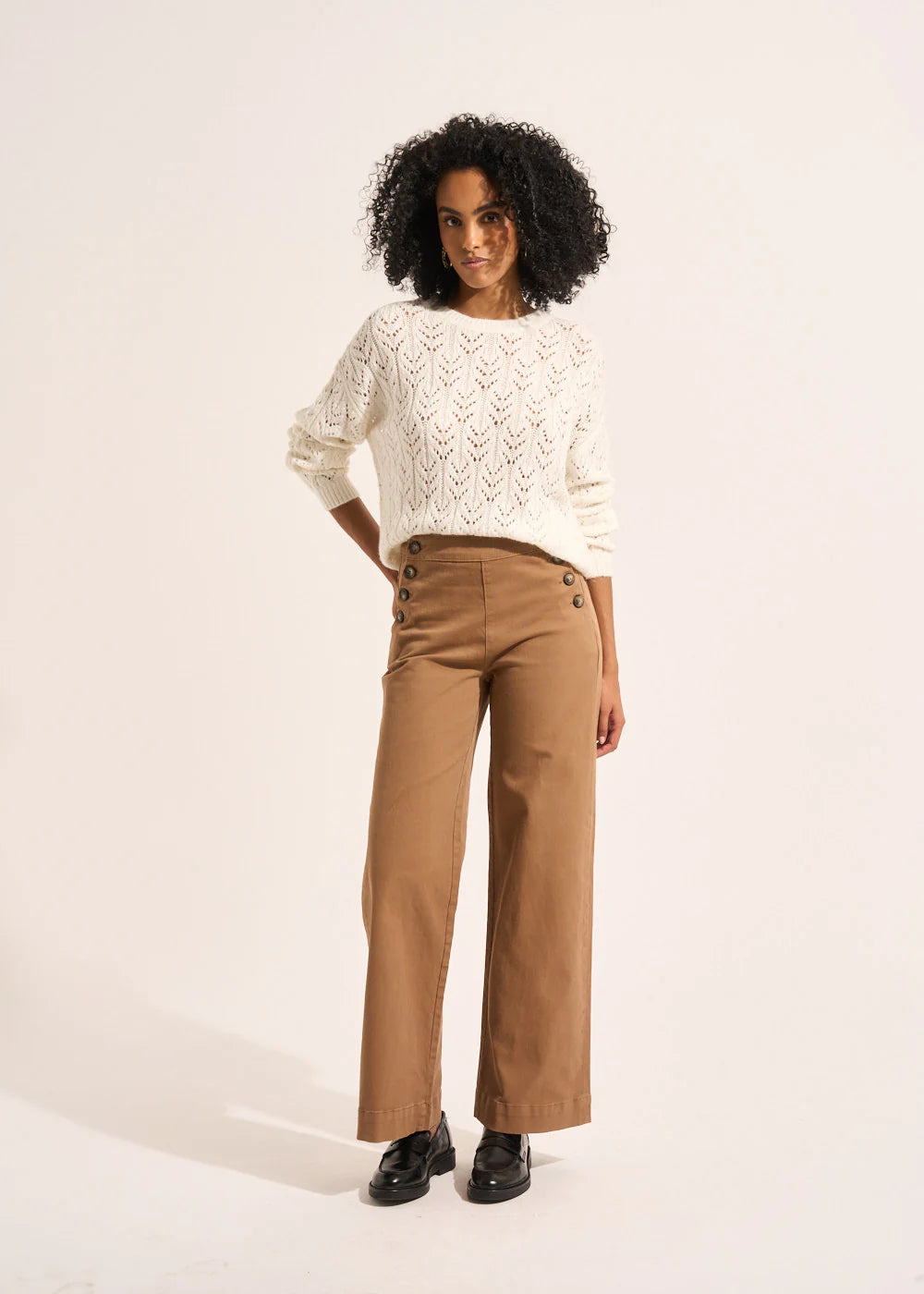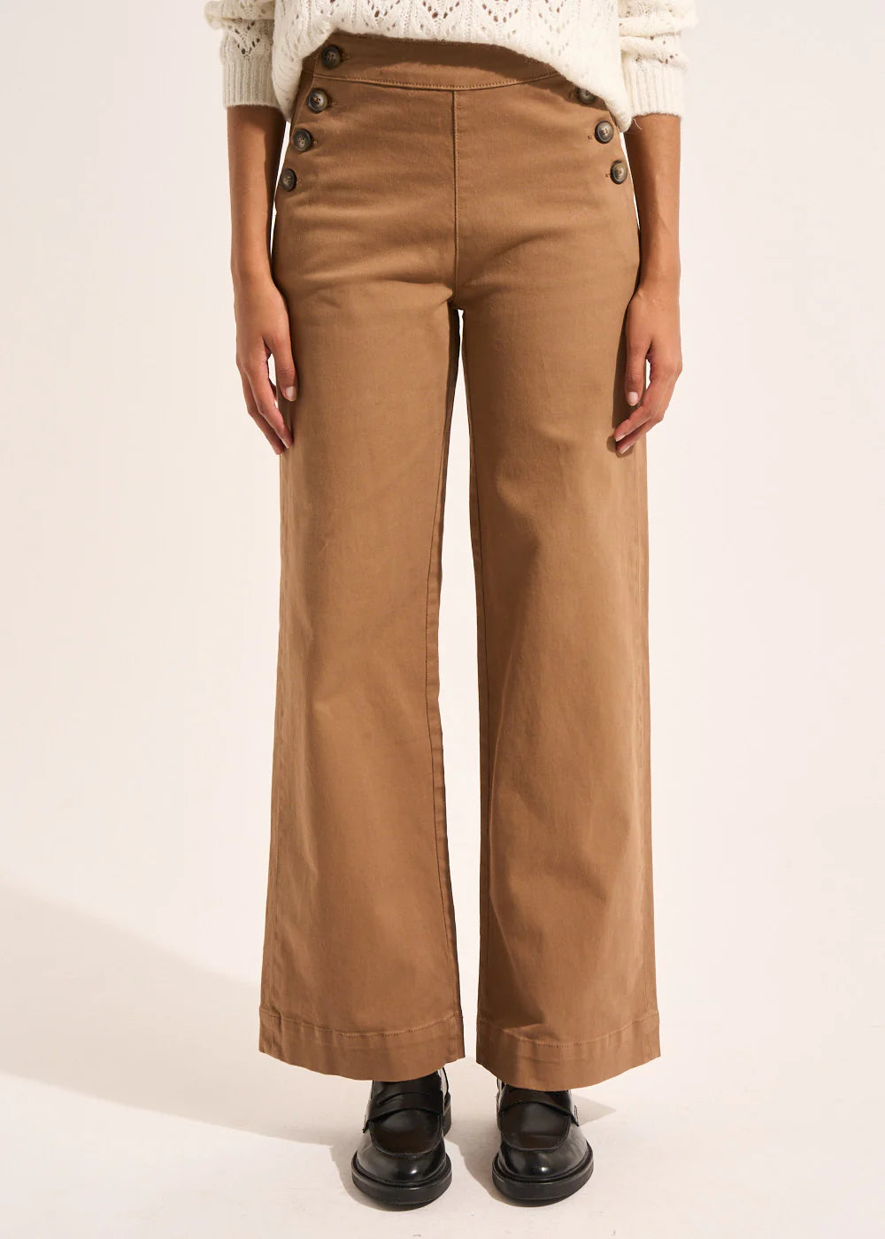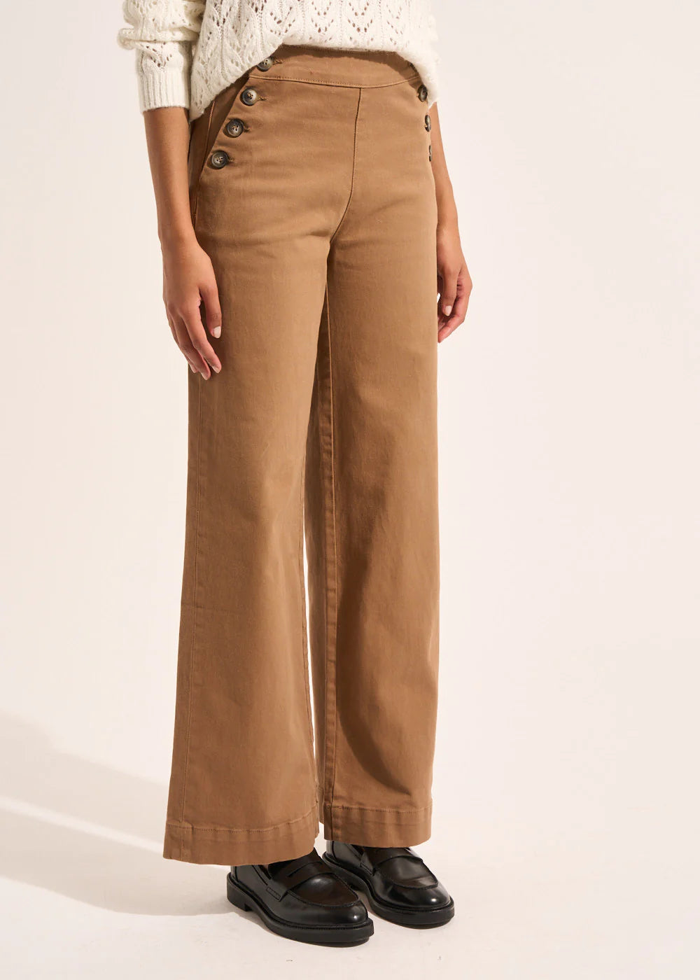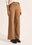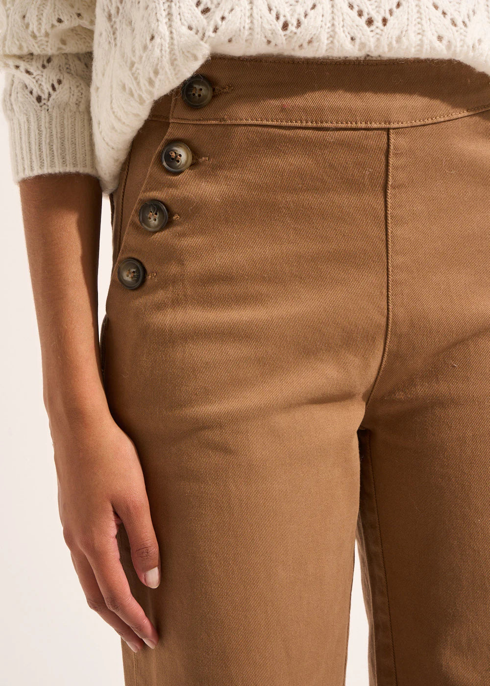 Step out in contemporary elegance with these high-waisted trousers. Featuring wide lapels and flared legs, they offer a flattering silhouette with a modern twist. Patch pockets on the back add a subtle, playful detail, while the high waist enhances your shape and makes them effortless to style. Perfect with tucked-in blouses, fitted knits