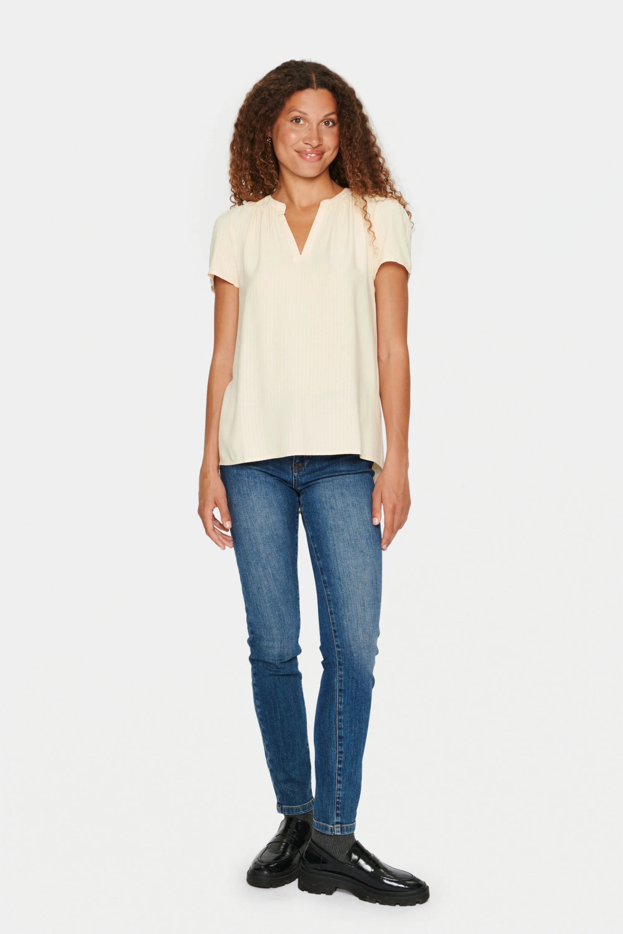 This top is one of those must have capsule pieces, easy to style, easy to wear, easy to wash! This classic Saint Tropez style has short sleeves and a V-cut neckline giving you all the freedom to dress it up or down for any occasion. We think it looks particularly lovely with a navy blazer and jeans for that smart casual chic.