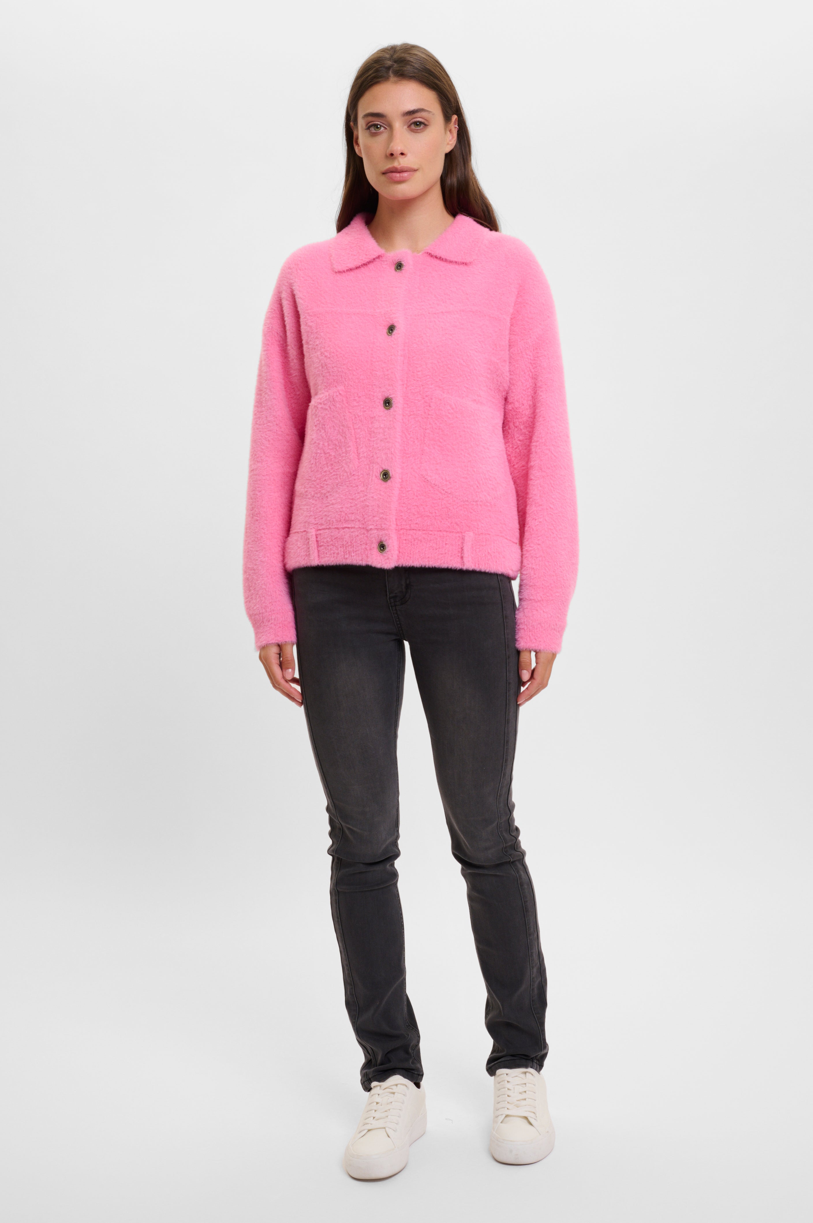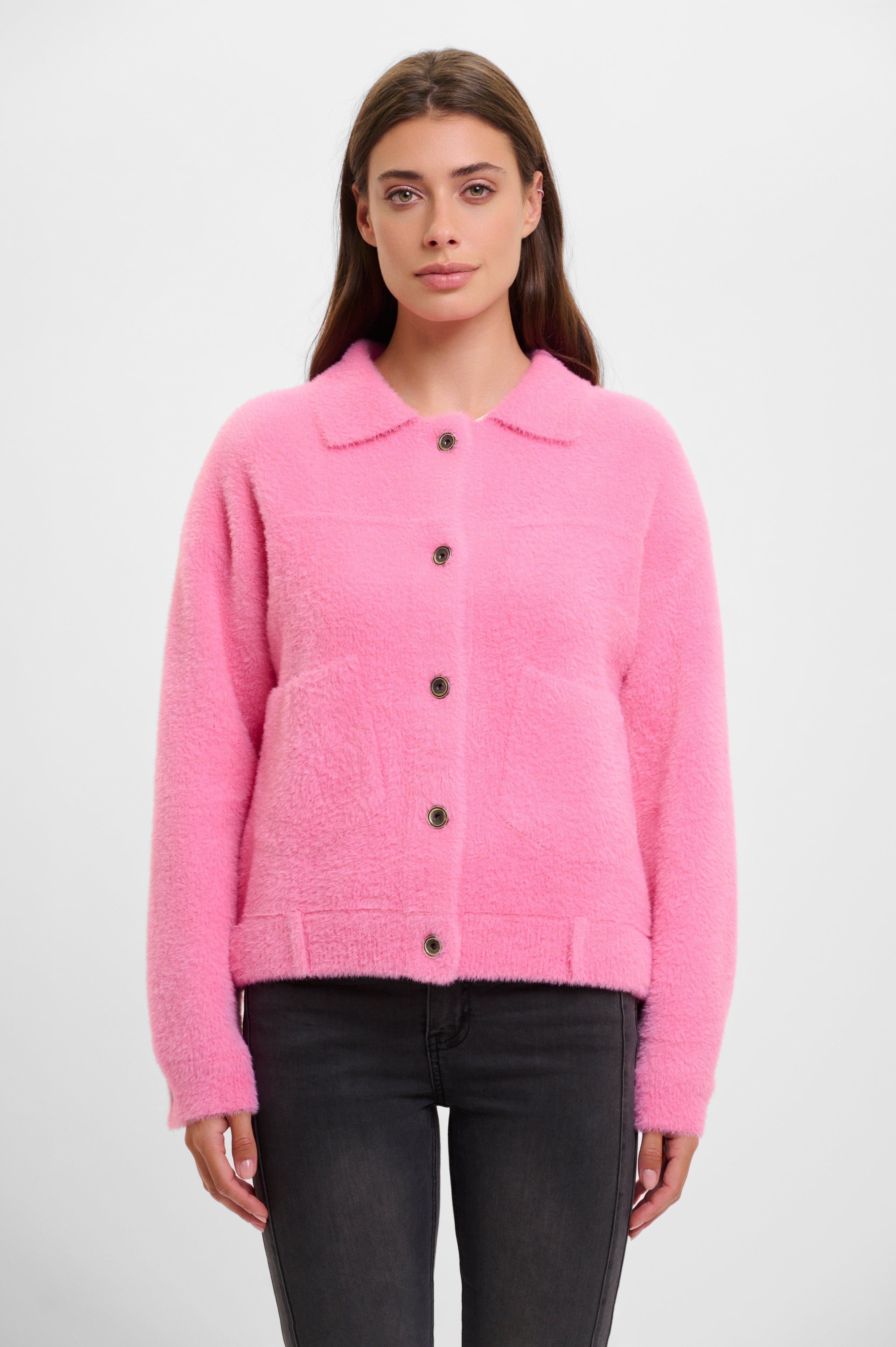 Bright and full of life, this jacket is a shorter, easy to style piece, perfect for adding a flash of colour to any outfit. Made from the softest plush material, this boxy style layer is a modern twist on your winter coat.