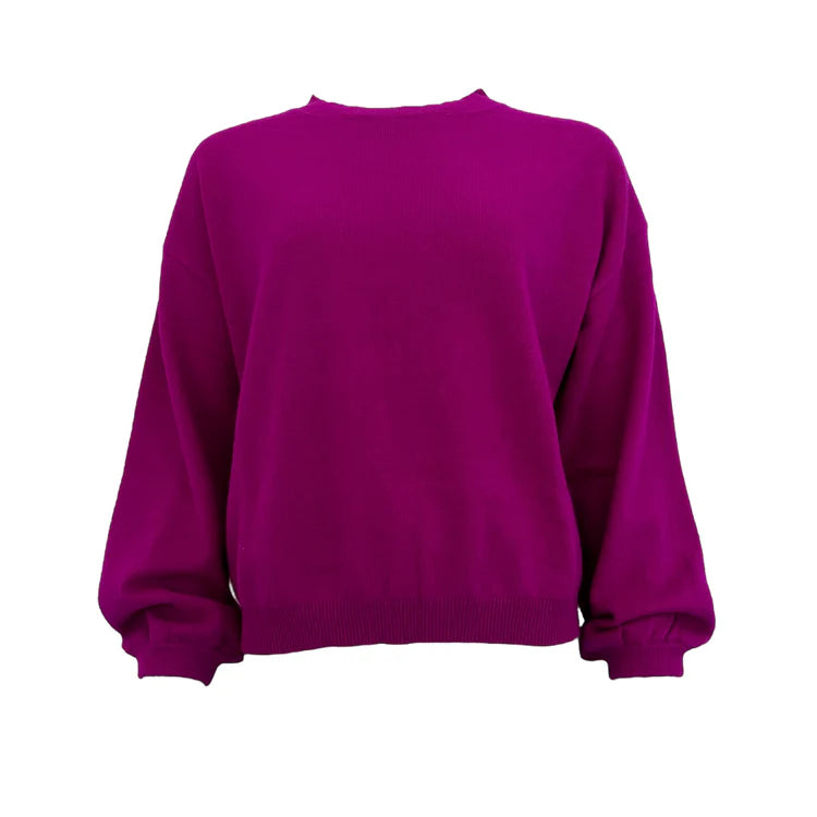 This jumper is a wardrobe essential, a timeless basic if you will for year after year wear. Oversized but with puffed sleeves for a flattering shape, this casual jumper can be thrown on with your jeans, a tiered skirt or even your sportswear for a 'ready-to-go' look. You will have never felt fabric like this!