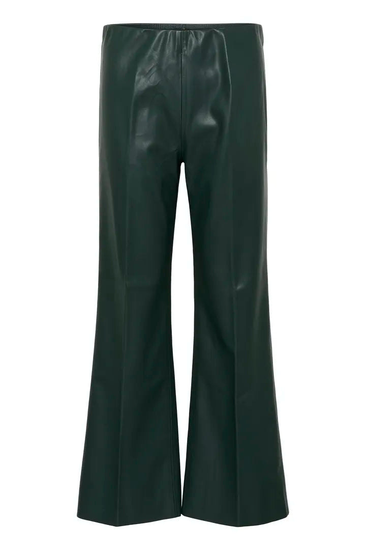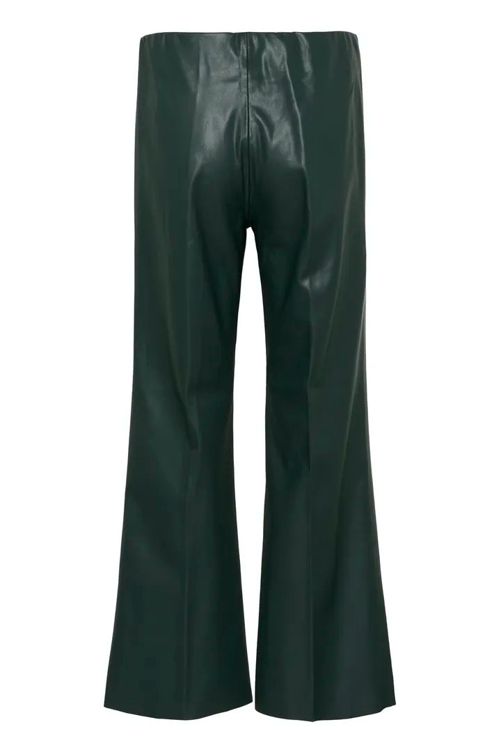 Sleek and effortlessly cool, these leather-look trousers are a modern wardrobe staple. Designed with a high waist and a flattering slim fit through the leg, they flow into a subtle flare that elongates the silhouette. The smooth, glossy finish adds just the right touch of edge, perfect for both casual days and nights out.