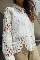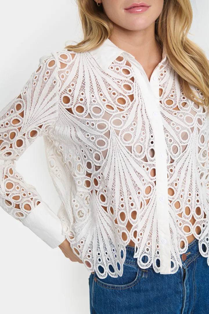The ultimate summer shirt is here, and it's breathtaking. In an all over broderie lace detail, this shirt is a real statement, but will never go out of style. With a classic oxford collar and button up style, you can layer this shirt over camisoles or something bright for a real pop!