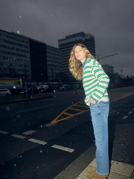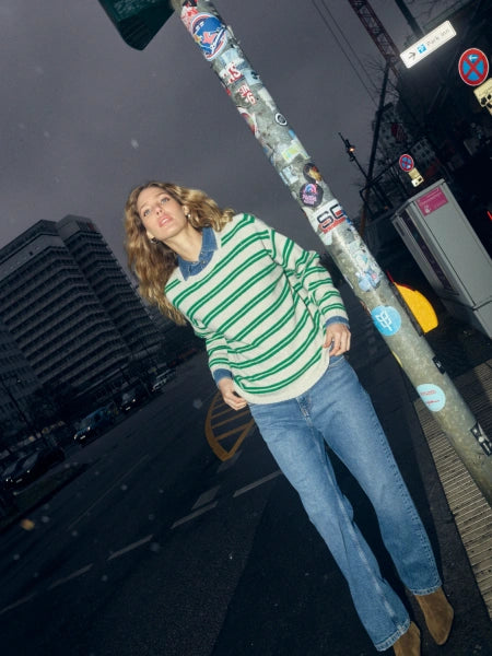 Everybody loves a stripe, and this timeless knit is a fun way to bring this classic pattern to your look. In a regular crew neck style, this sweater is easy to wear with jeans and trousers for the cooler months of the year so you can stay cosy and stylish. Throw on with denim jeans for a ready-to-go look.